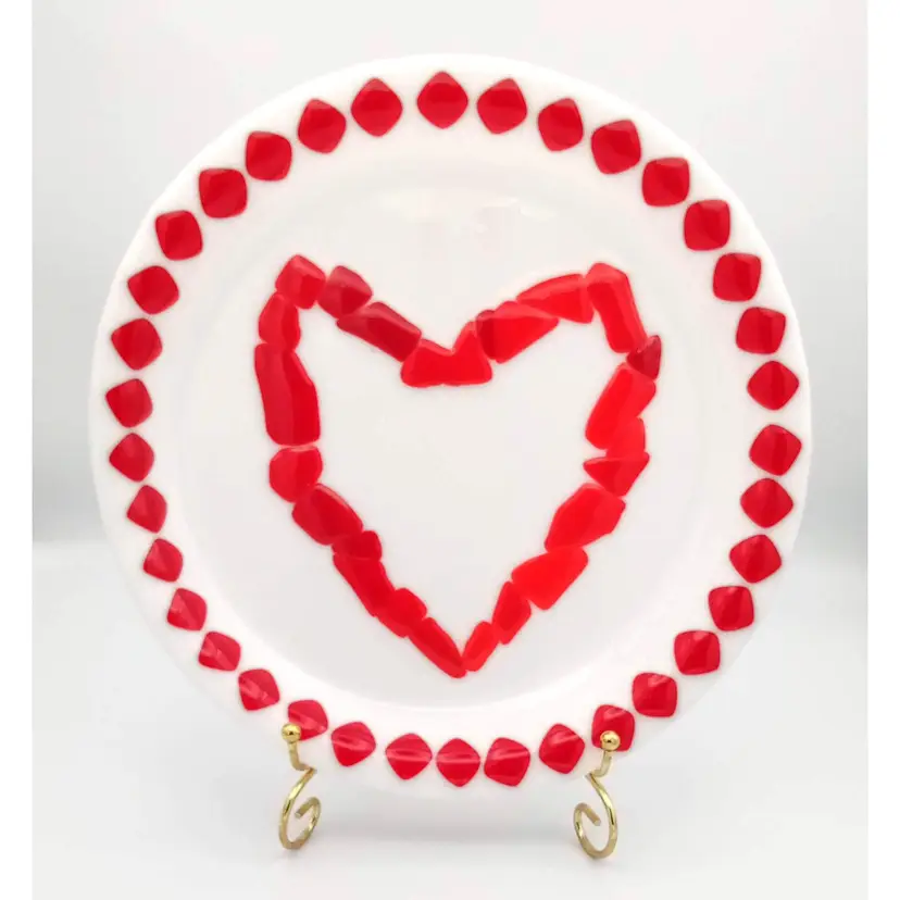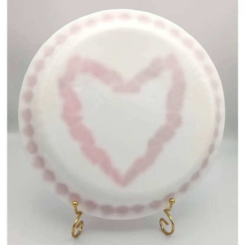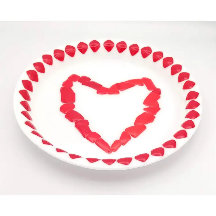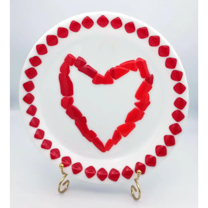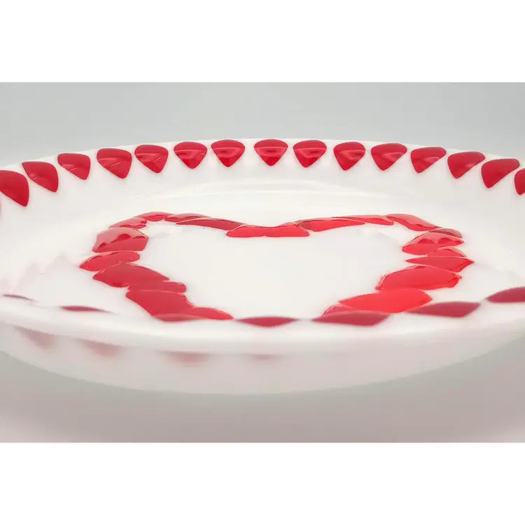 This piece has a few minor imperfections from use, but only upon very close inspection. It measures 11" across and a little over an inch in depth. It's a fun vibrant piece for Valentine's Day or any occasion that bears the heart at it's center. Thanks for looking!