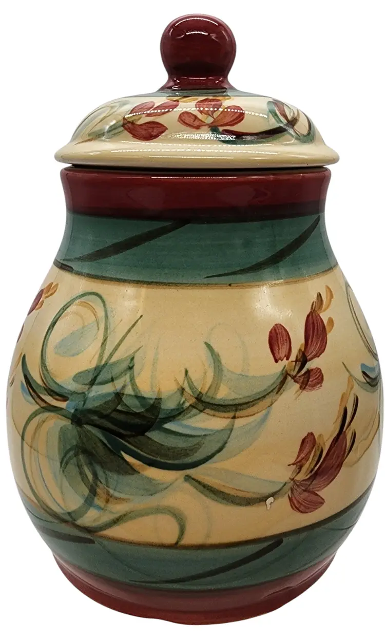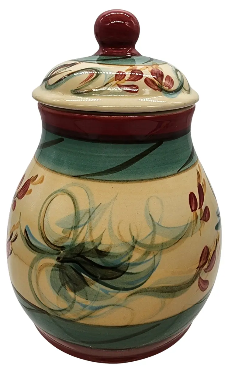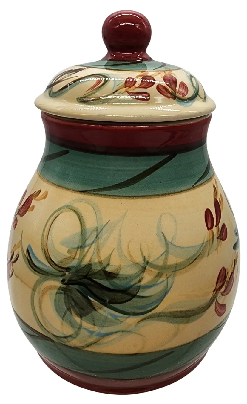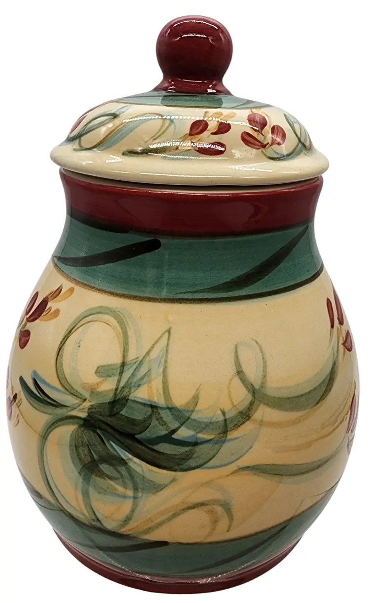 Elevate your home decor with the charming Gail Pittman Pottery Red Grapevine Pattern Small Canister/Vase, complete with a coordinating lid. This piece exemplifies the timeless beauty of pottery craftsmanship, featuring a vibrant red grapevine design that brings a touch of rustic elegance to any room. Ideal for displaying flowers or as a standalone decorative piece, this vase is a versatile addition to your collection. The renowned Gail Pittman brand ensures a high-quality, handcrafted piece that is both visually appealing and durable, making it a perfect choice for those who appreciate the fine art of pottery.