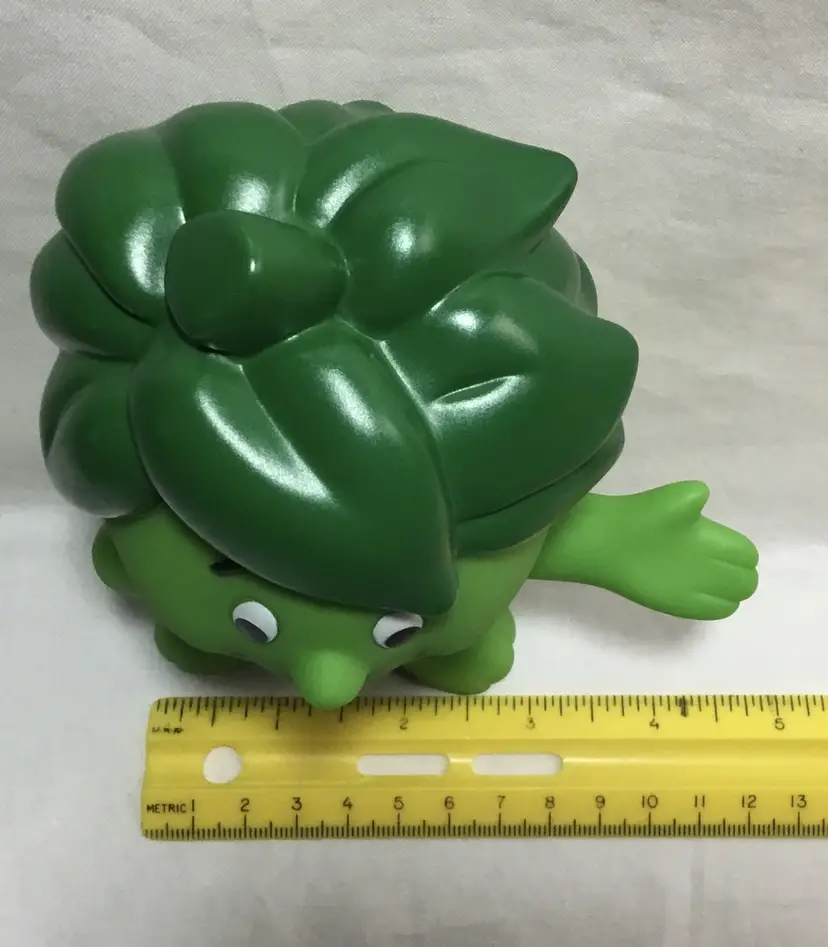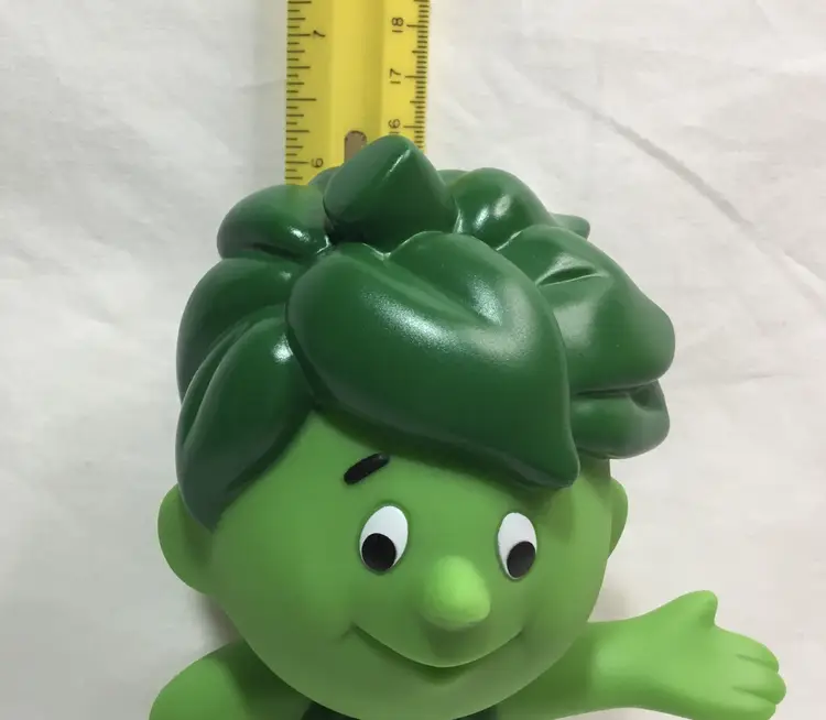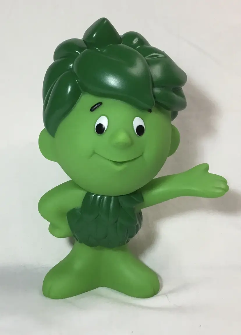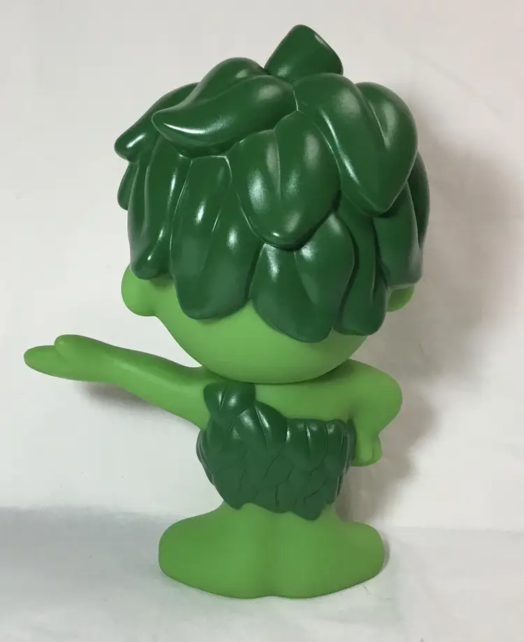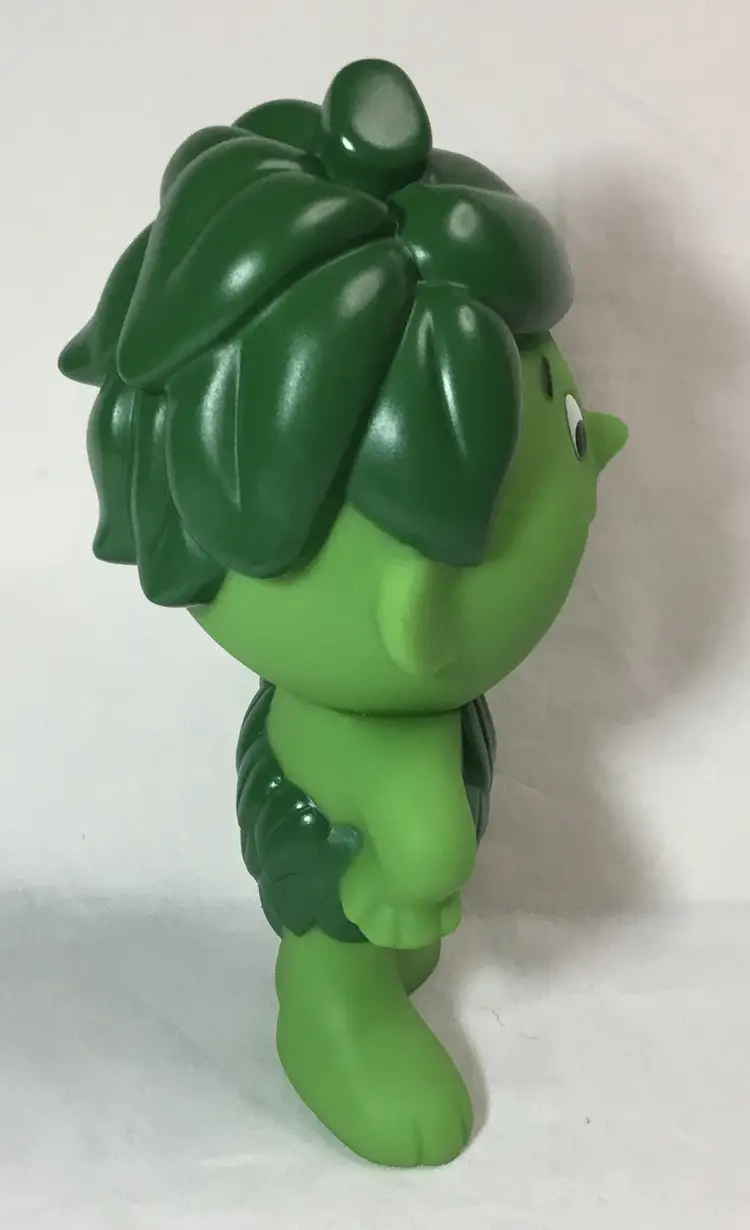 6.25 inches tall by 4.5 inches wide, Sprout toy stands with one hand on his hip and the other hand outstretched. Green plastic skin, darker green hair and clothes. Head turns around. Collectible.