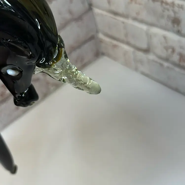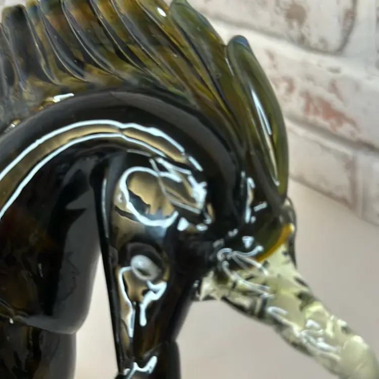 Chips one ear gone, horn not broken off but not , tail not broken off but finished. what I mean by not finished it is not shiny and a little rough so I think who made made some mistakes on it