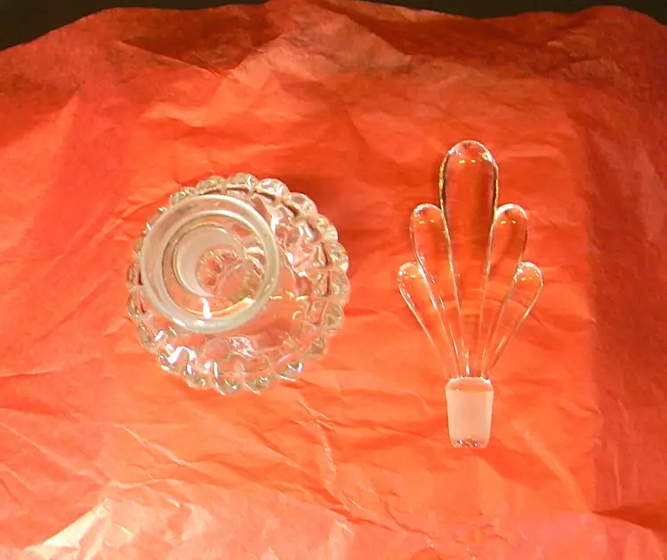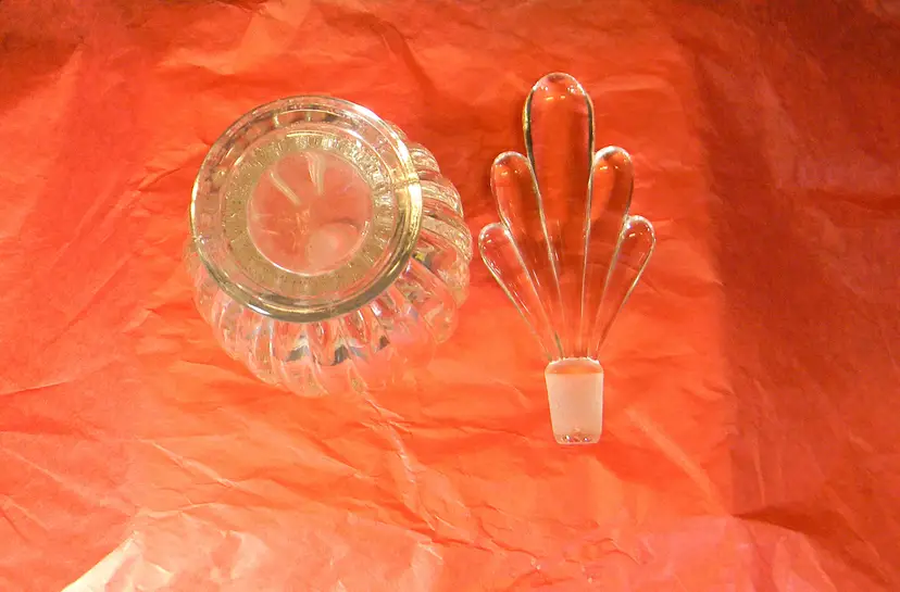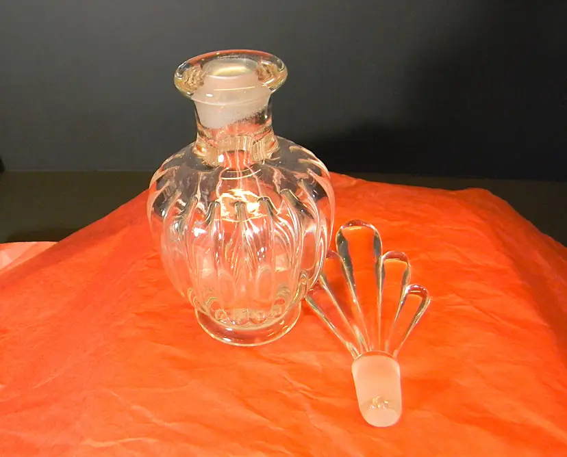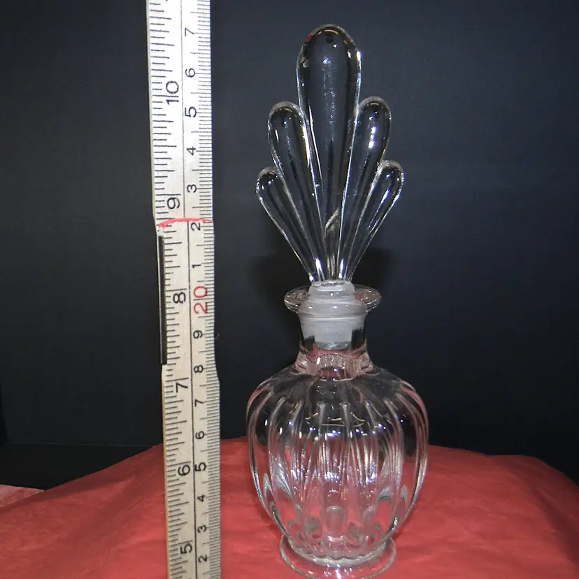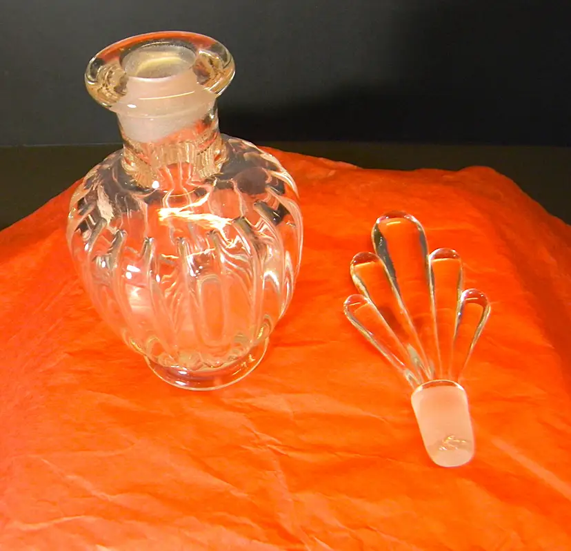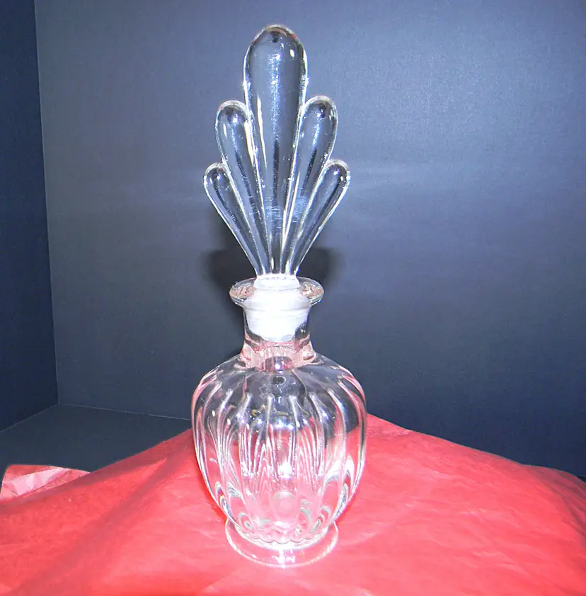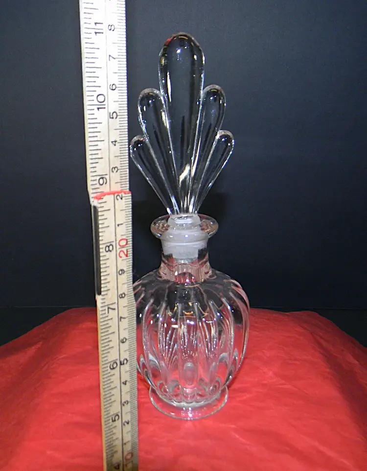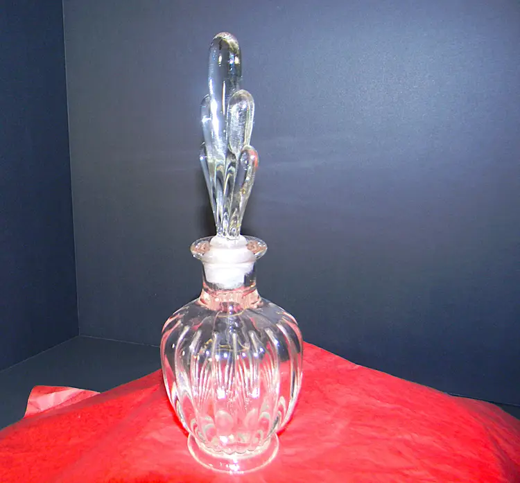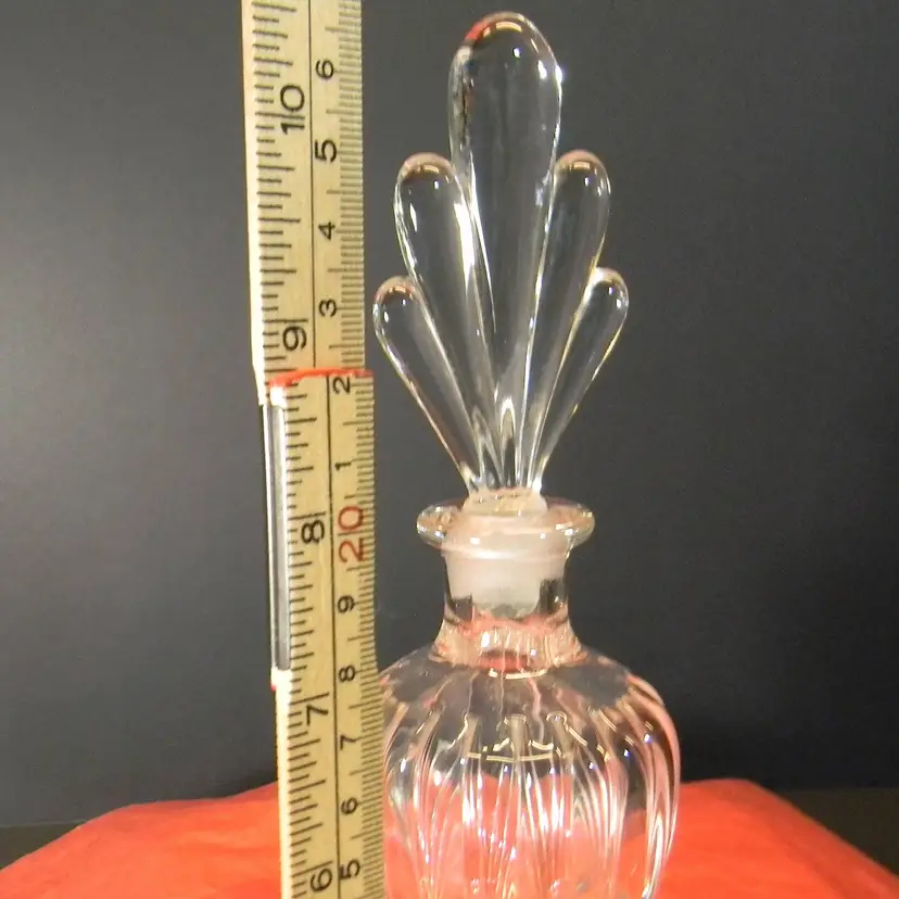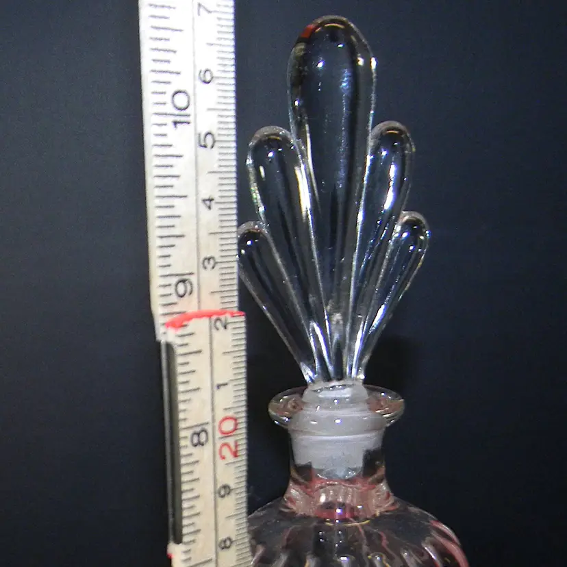 A beautiful glass perfume bottle with stopper. Would look great seating on your dresser. No chips or cracks Used condition see photos The difference in computer monitors actual colors may vary slightly from those shown