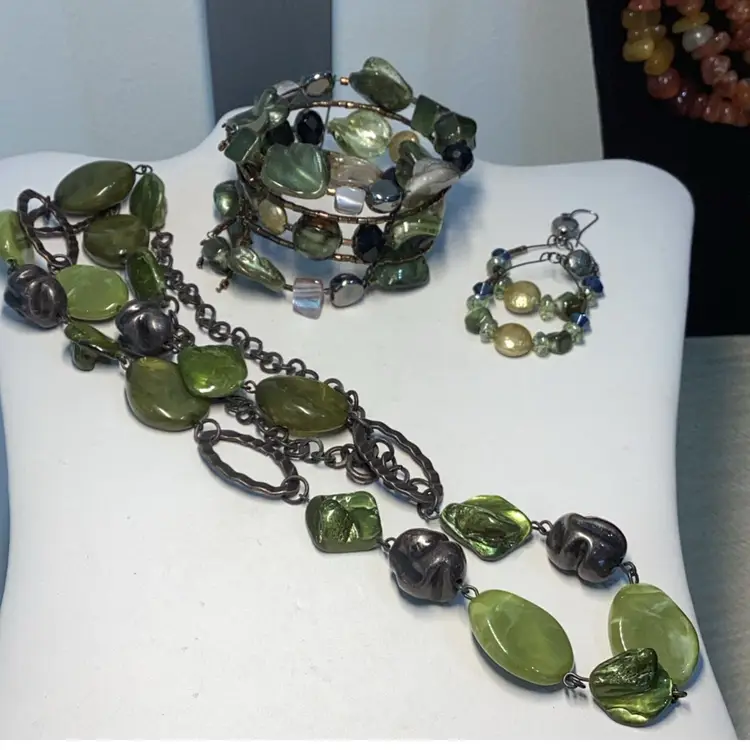 #01 - Green Set Necklace, Earrings & Bracelet