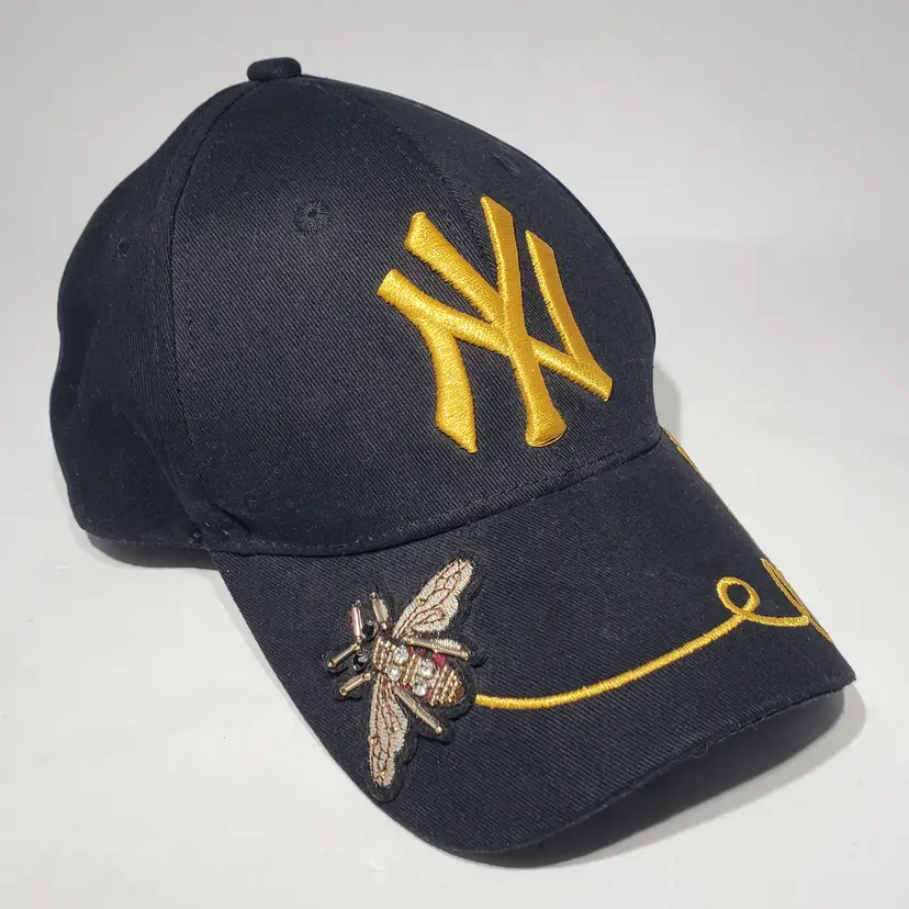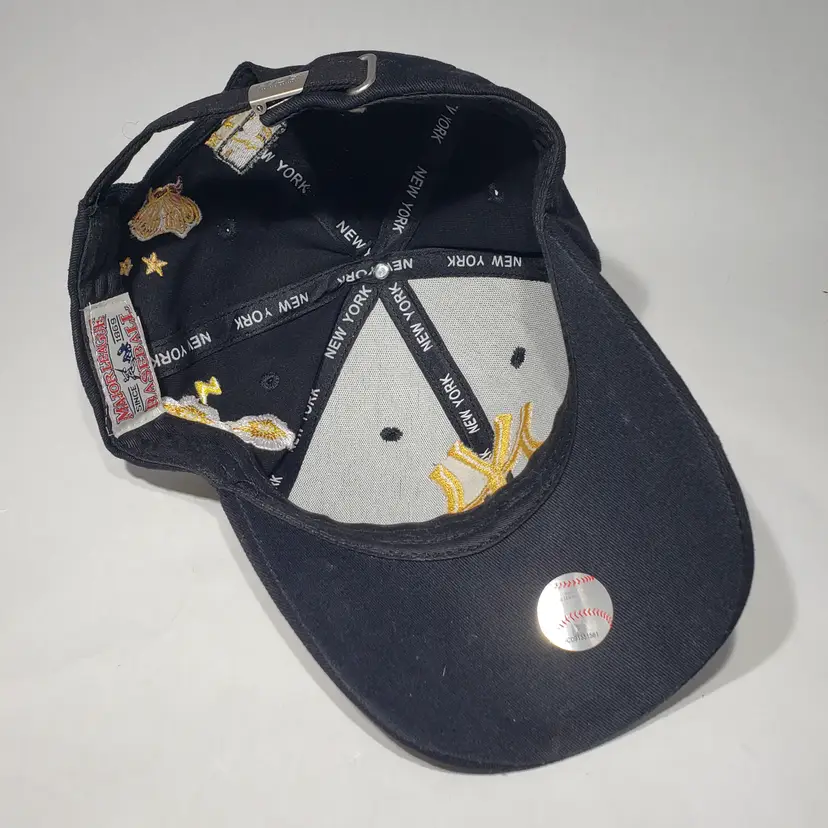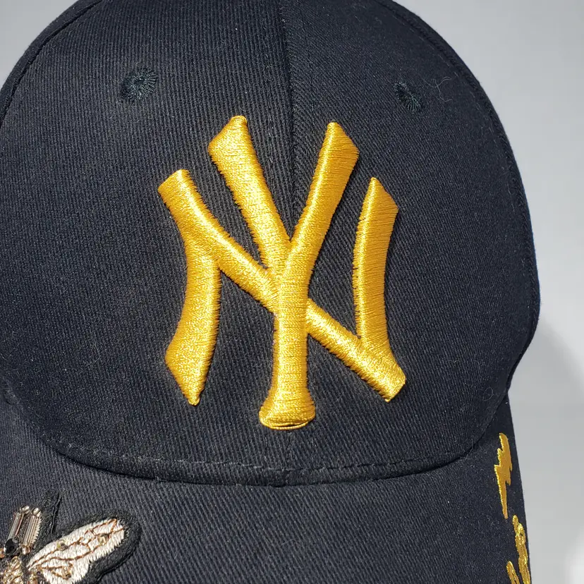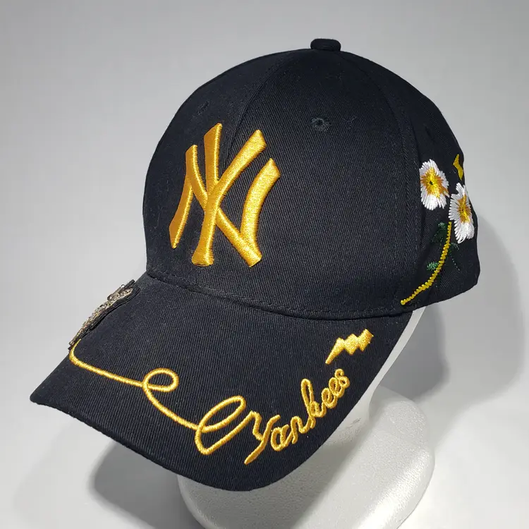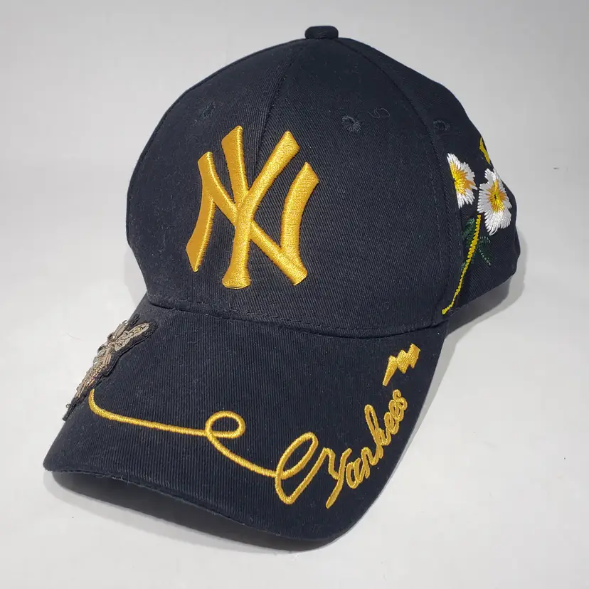 MLB New York Yankees Black Hat Embroidered Logo, Bee, Butterfly, Flowers Adjustable Strapback Pre-owned, see photos.