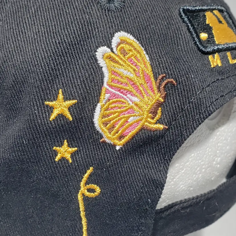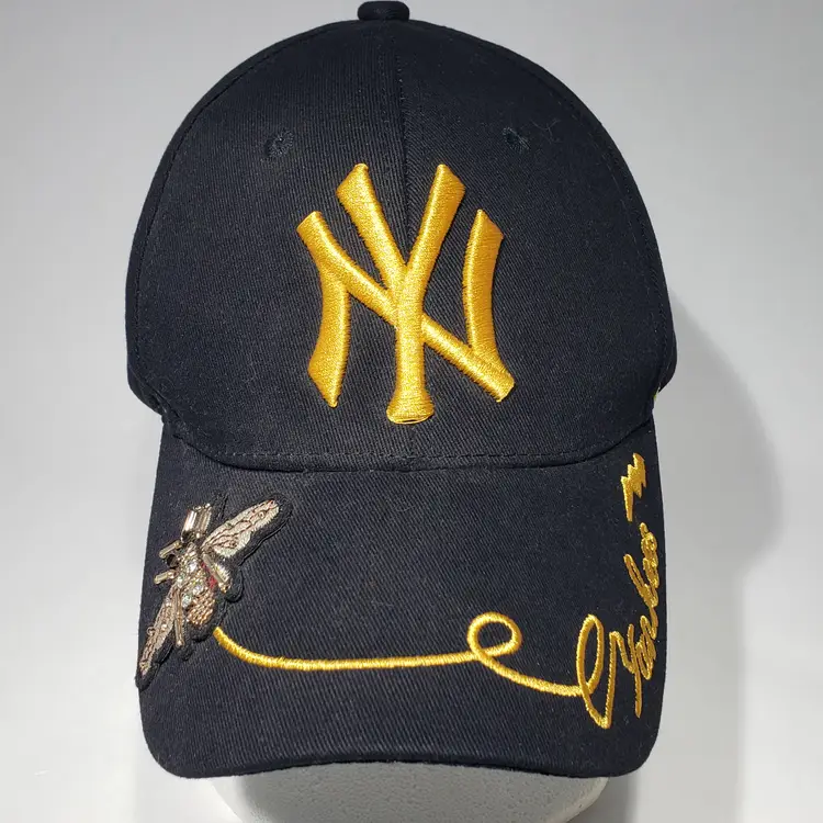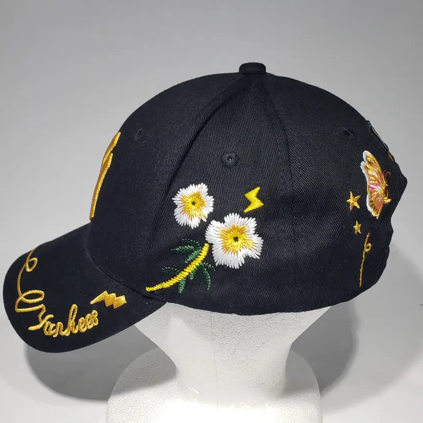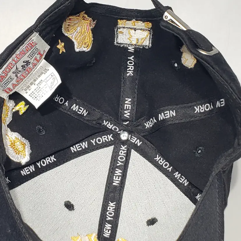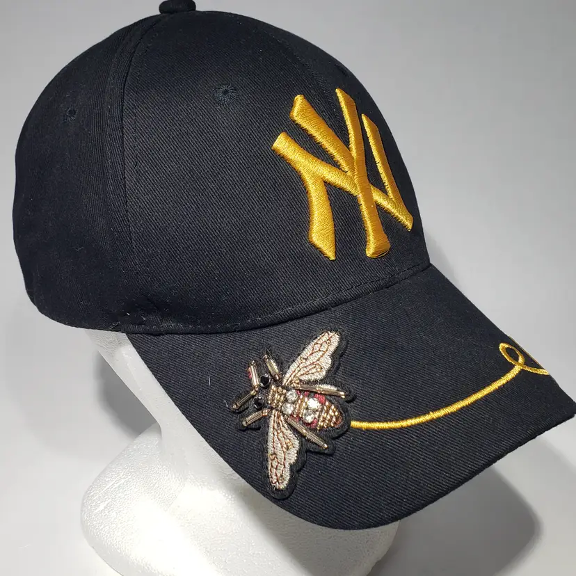 MLB New York Yankees Black Hat Embroidered Logo, Bee, Butterfly, Flowers Adjustable Strapback Pre-owned, see photos.