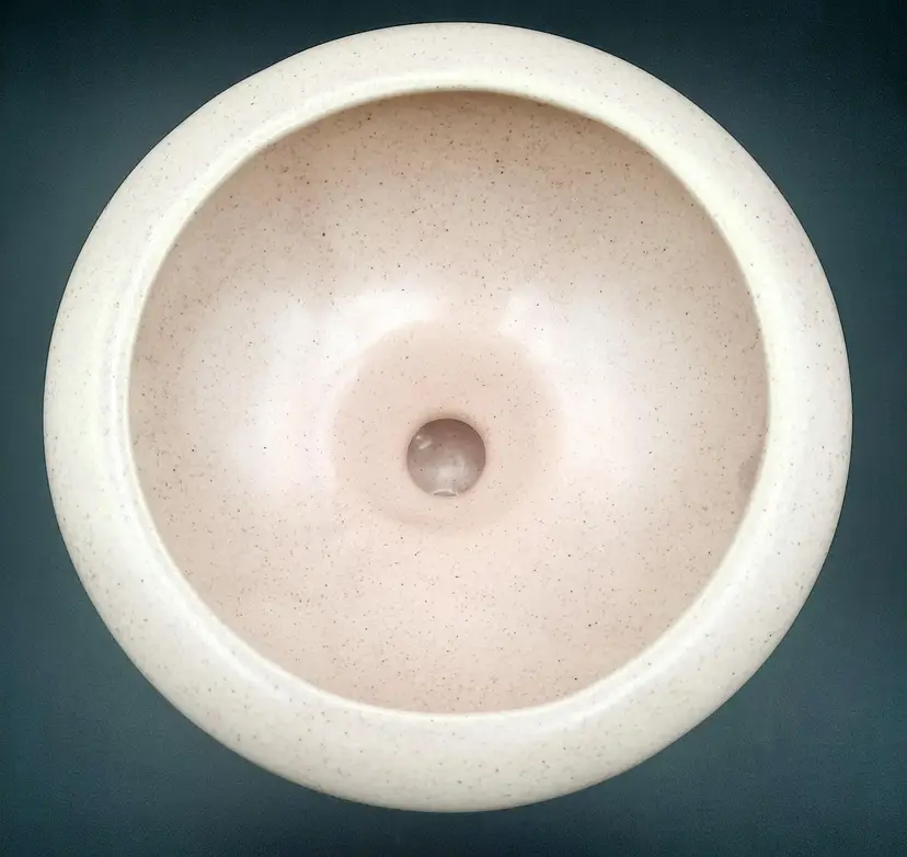 5 1/2"H x 7 1/2"W at rim, excellent condition with a few mfg blemishes