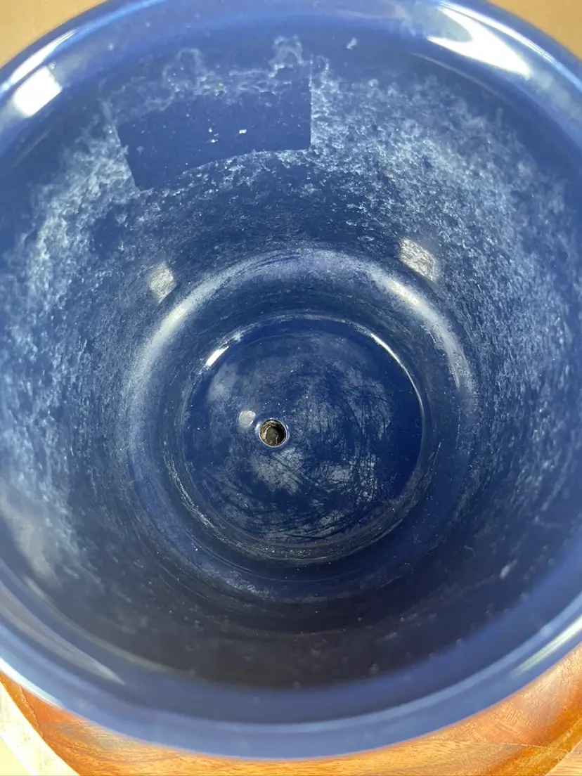 Has hard water stains. Not certain, but there may be hairline cracks. See photos for condition and measurements.