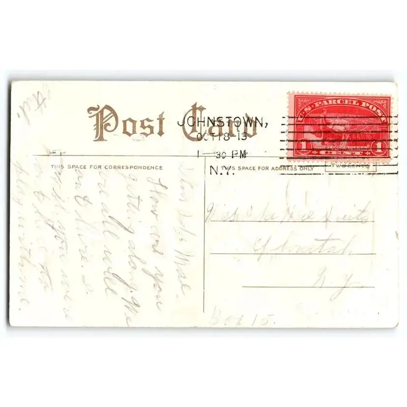 Posted with 1913 cancel. Antique original vintage embossed post card. Has corner dings, and age wear. Stock #hal435.