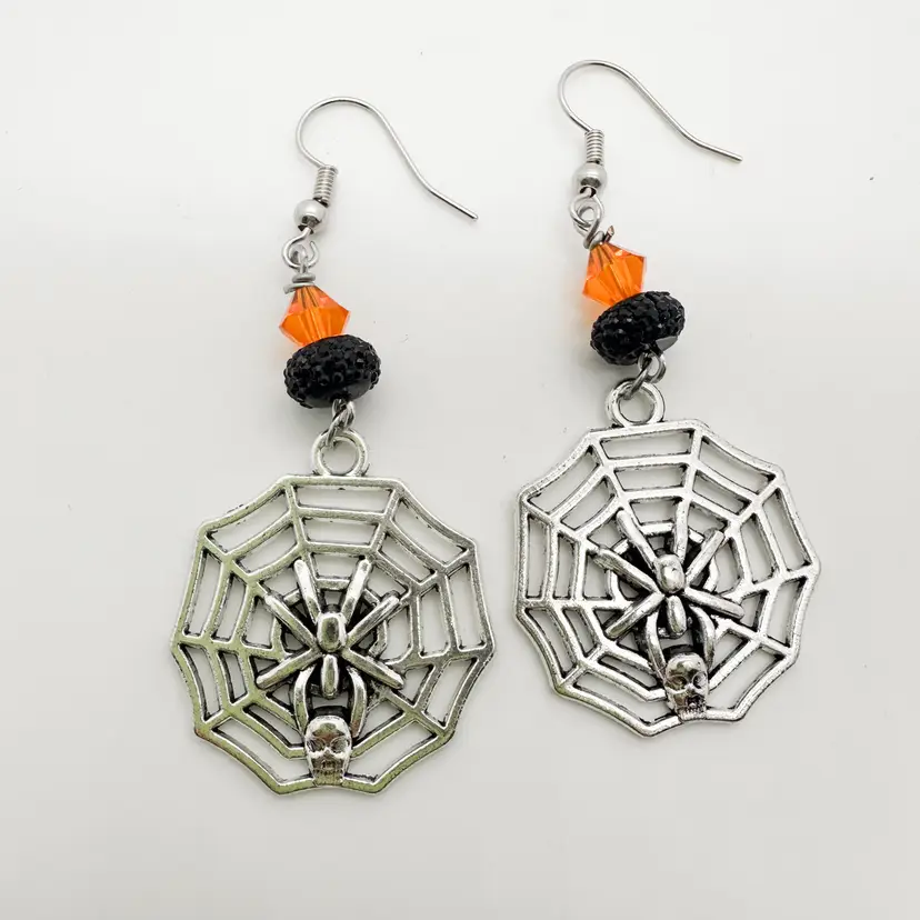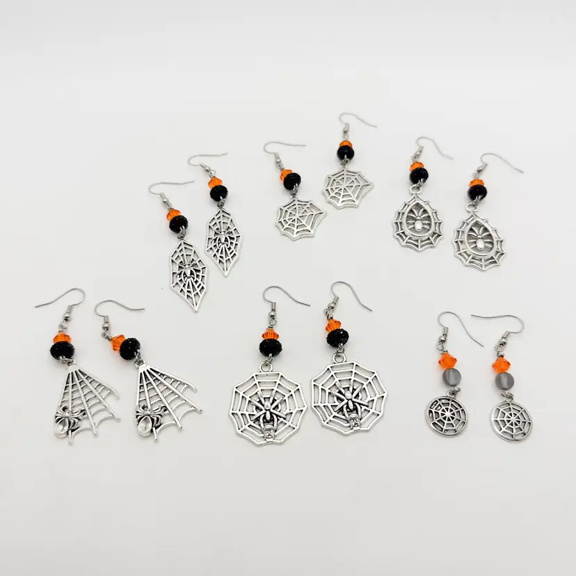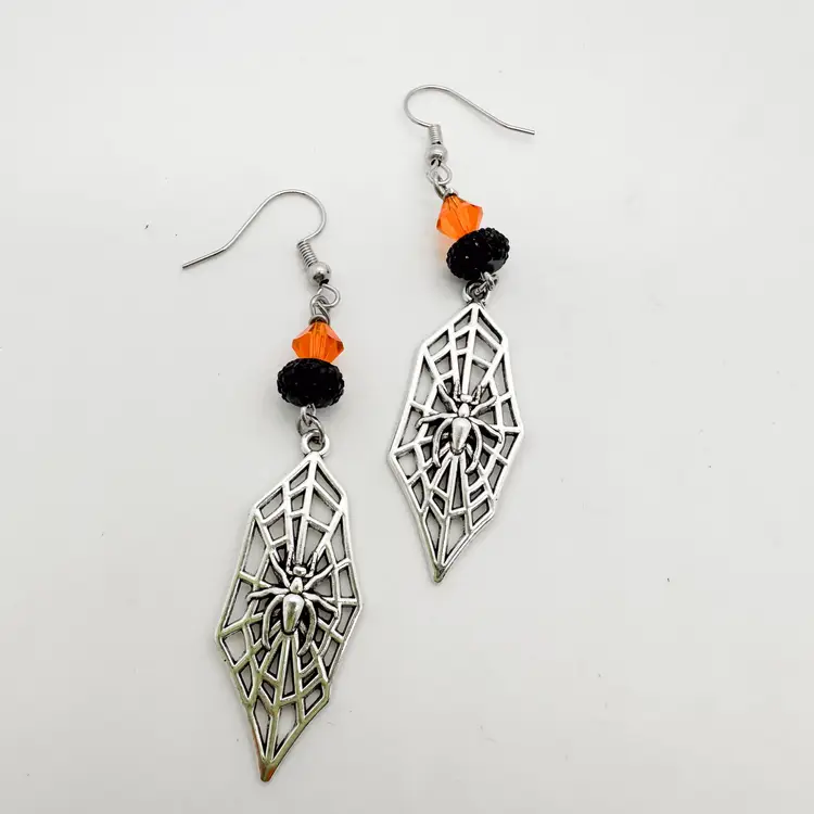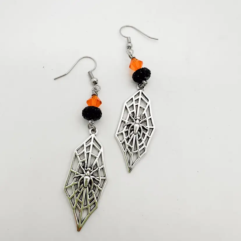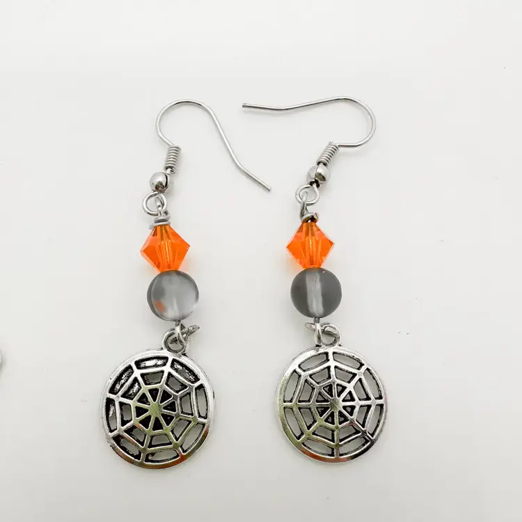 Silver tone metal Orange, black, grey, bead accents, vary Approximately 2" L, varies Progressive shipping with $5 flat rate shipping, $.50 each additional item