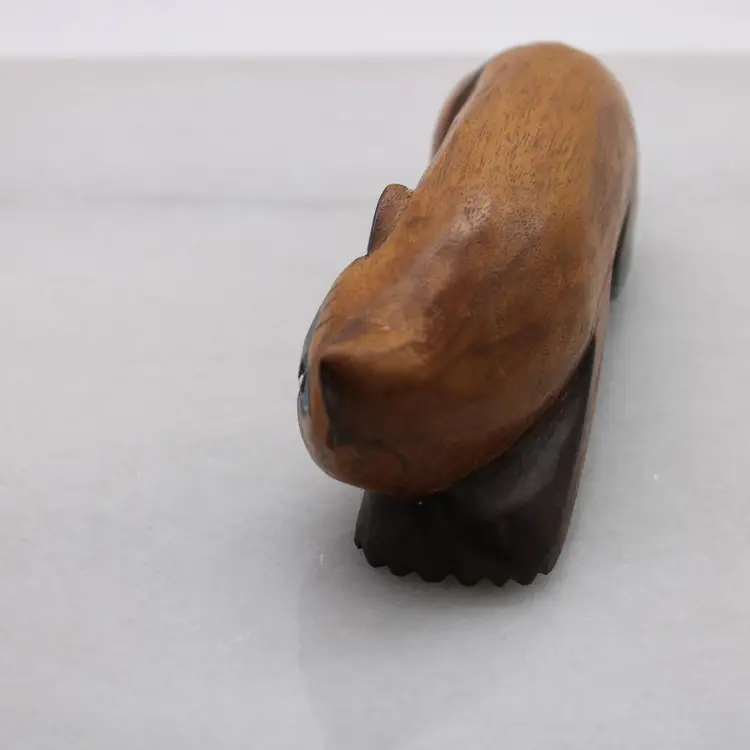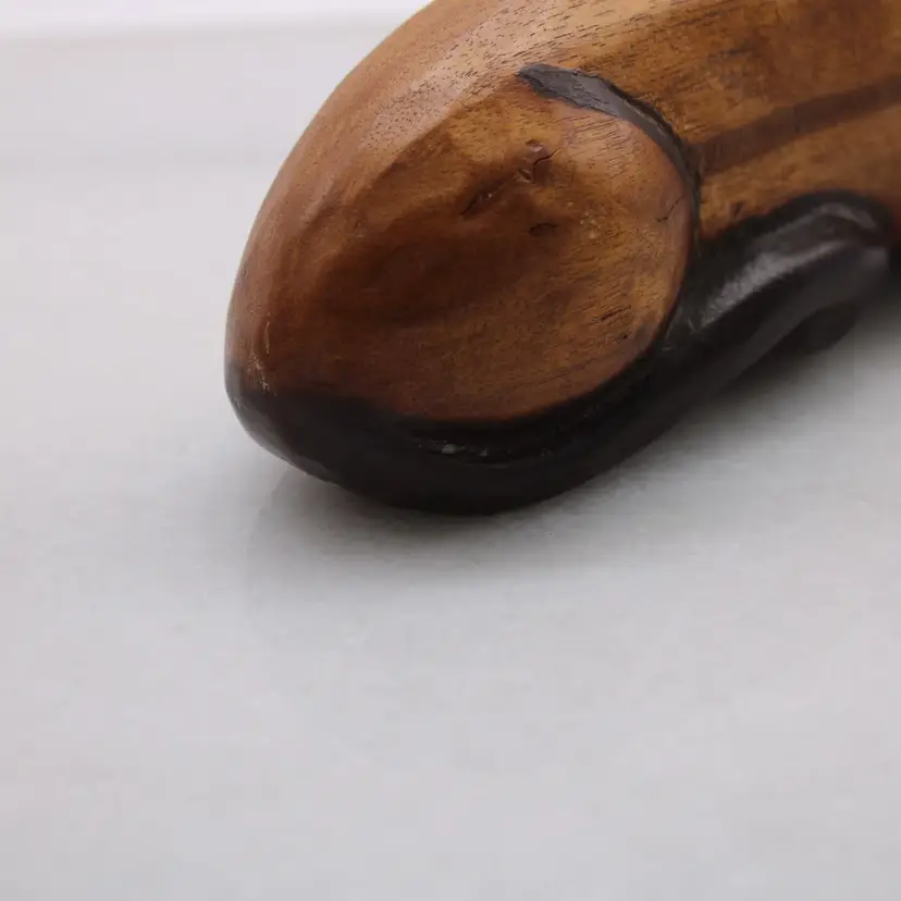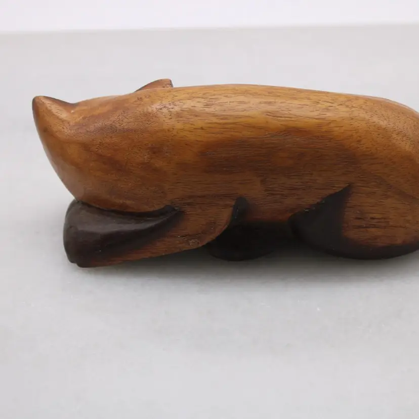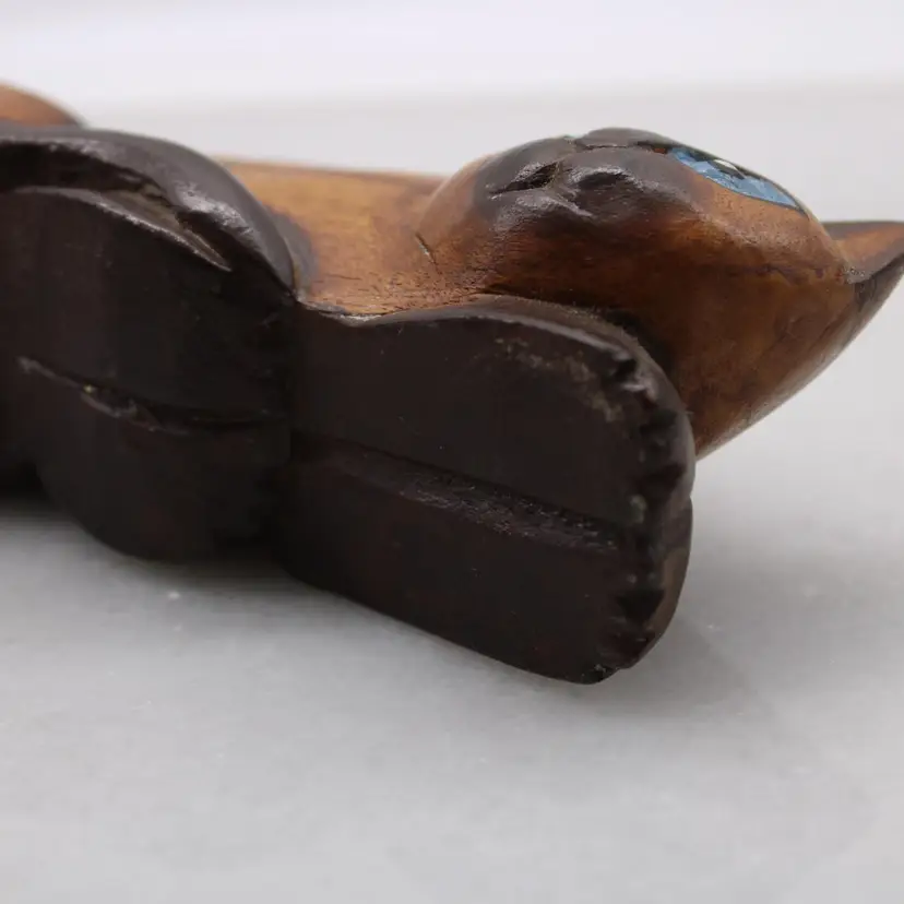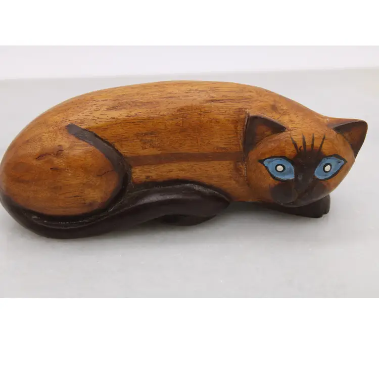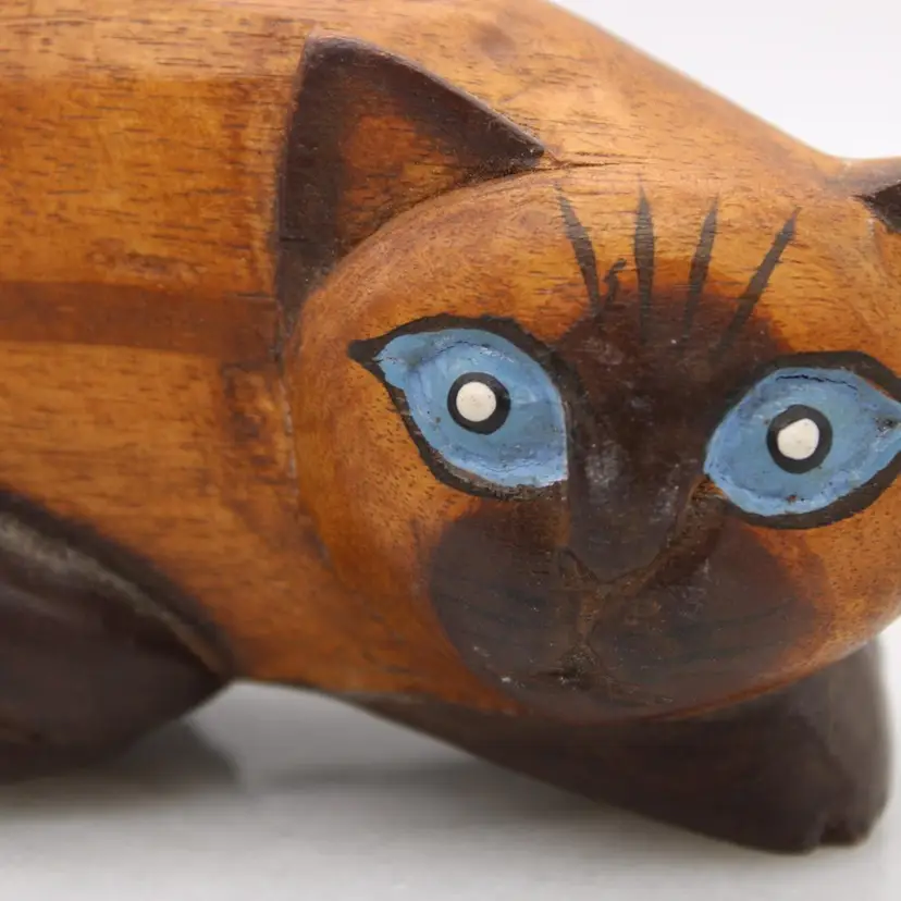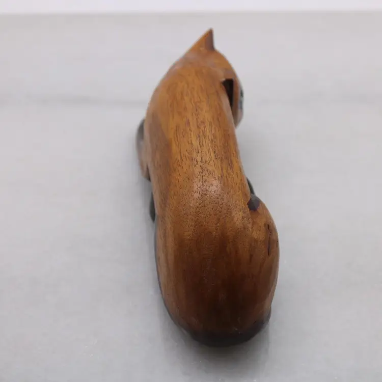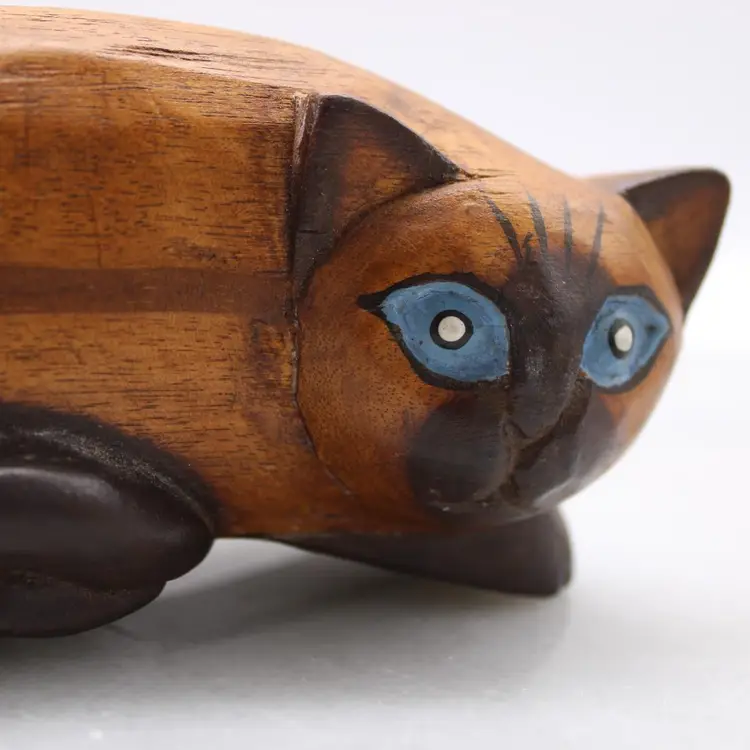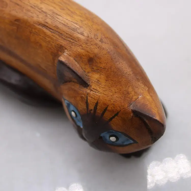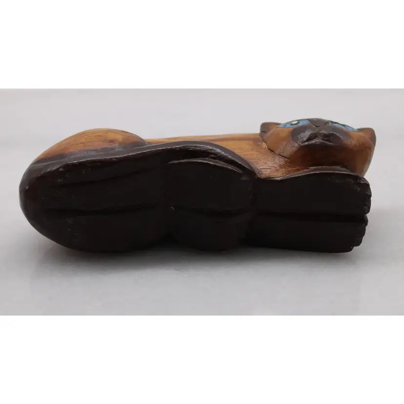 Lovely carved wood (balsa?) cat figure with hand-painted features. 6" long x 2" wide x 2" tall.