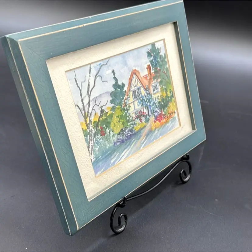 81/4”W 41/4” T in side mat 31/2”T no chips, cracks or breaks and wonderful condition and painted with a makers mark. It’s a beautiful picture.