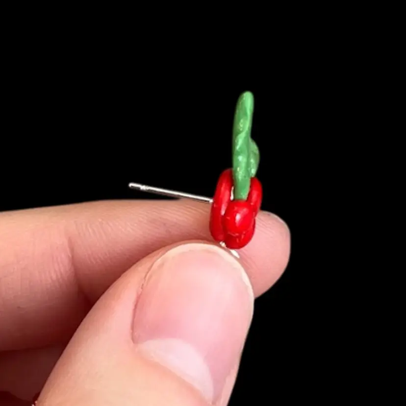 Approximately 2.25” long. From the post to the bottom they’re approximately 1.75” long. This is a hand sculptured polymer clay item, so there are "imperfections" like faint fingerprints and lines in the clay. The earring backs have been attached with locktight gel super glue and the polymer clay portion has been painted with a thin layer of gloss varnish.