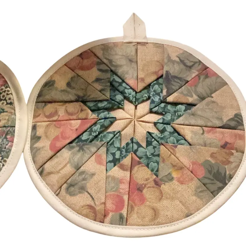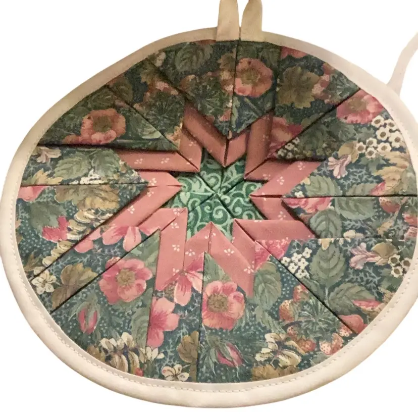Measures approximately 7 inches wide, handmade star trivet pot holder, Amish style