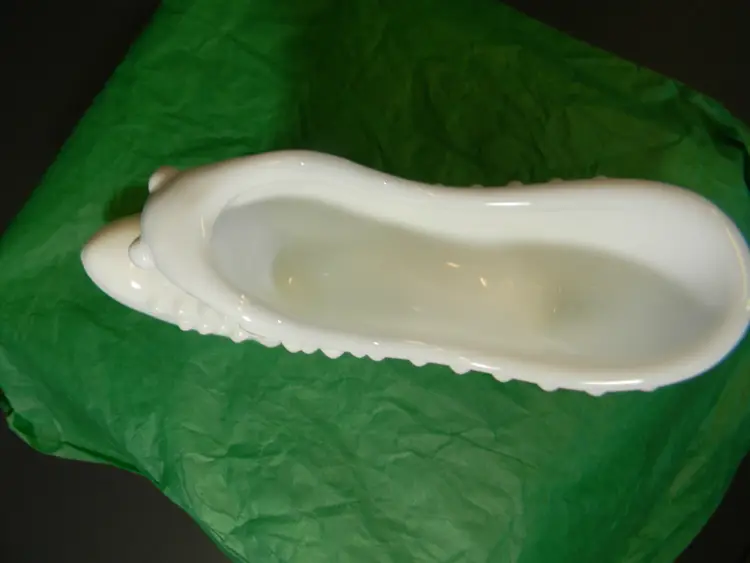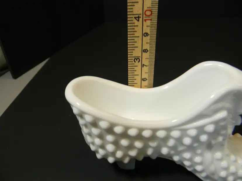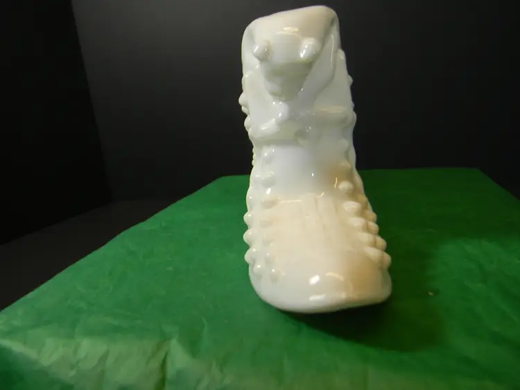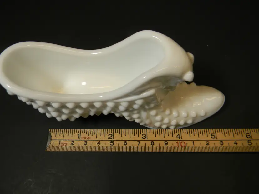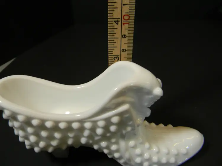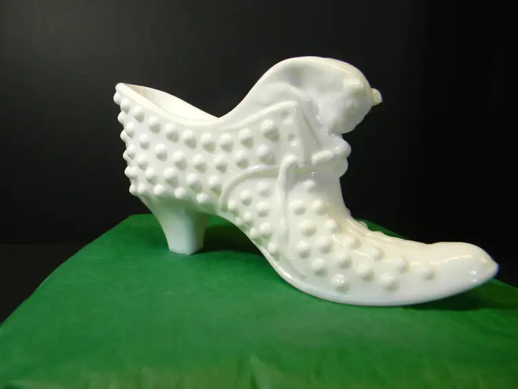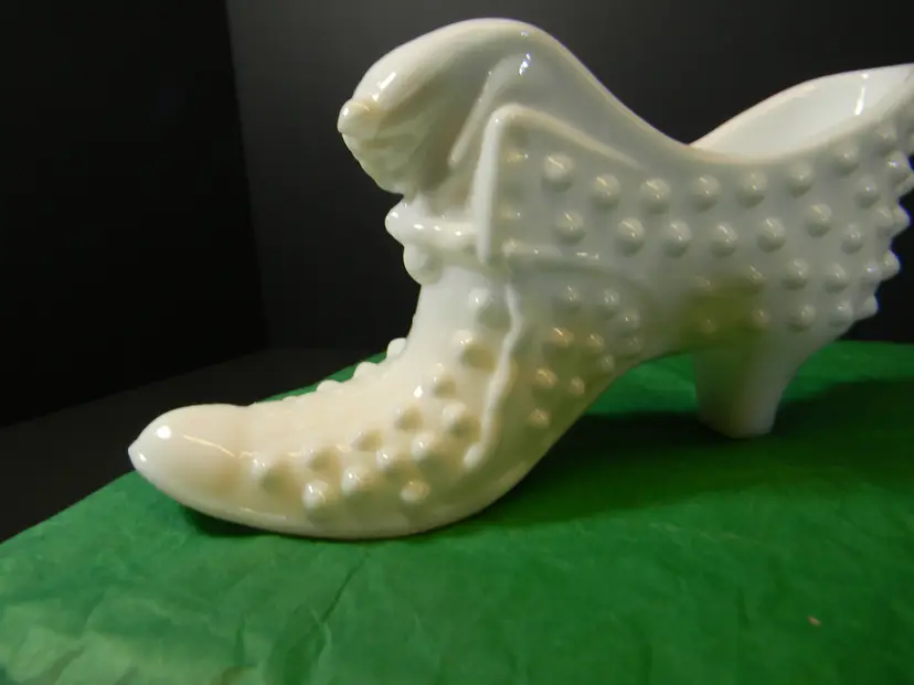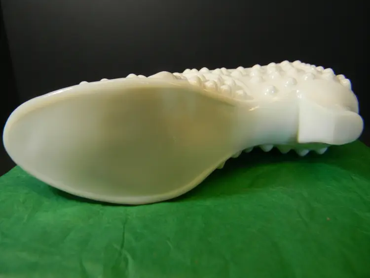 Hobnail Milk Glass Shoe/Slipper with a cat on it. Used to bring prosperity to you when given as a gift No chips or cracks used condition see photos The difference in computer monitors actual colors may vary slightly from those shown