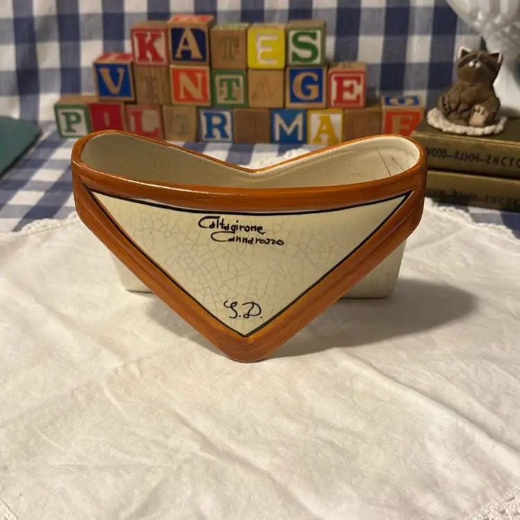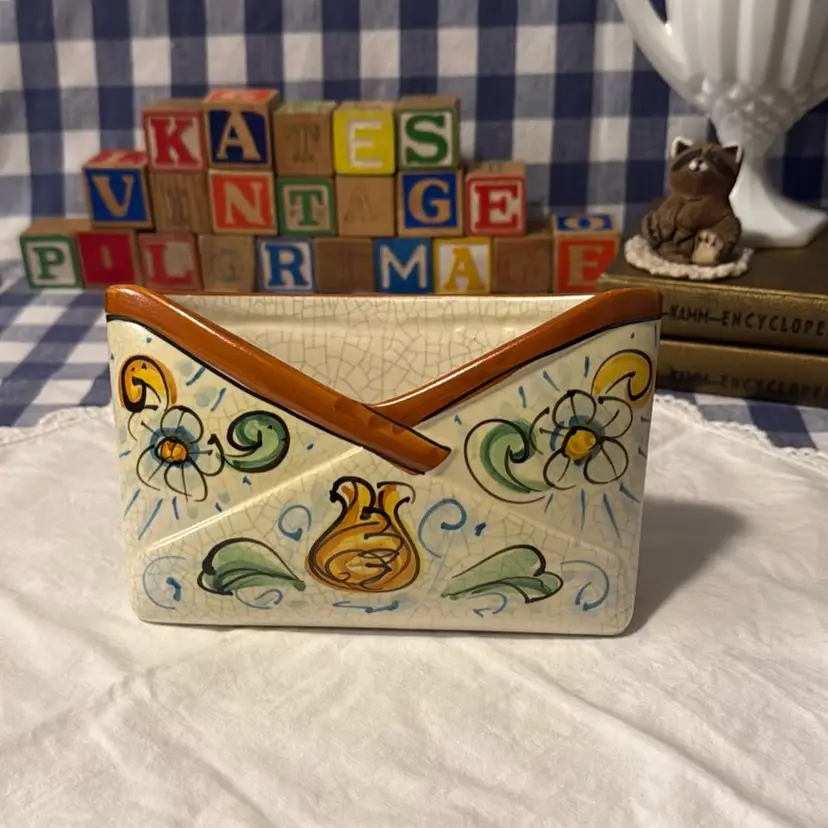 Italian Ceramic Planter / Mail Holder from Caltagirone, Sicily. The term "Cannarozzo" is associated with ceramics from Caltagirone, Sicily.