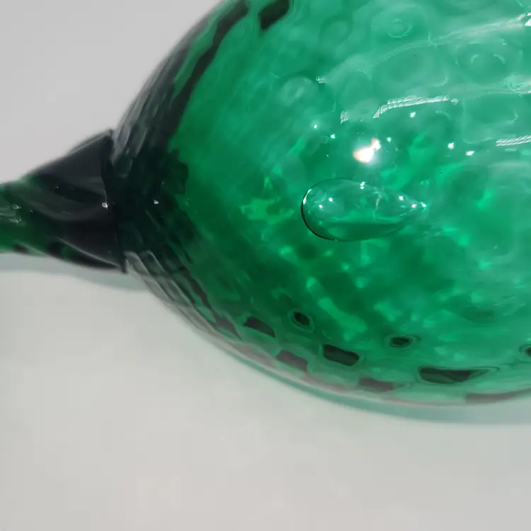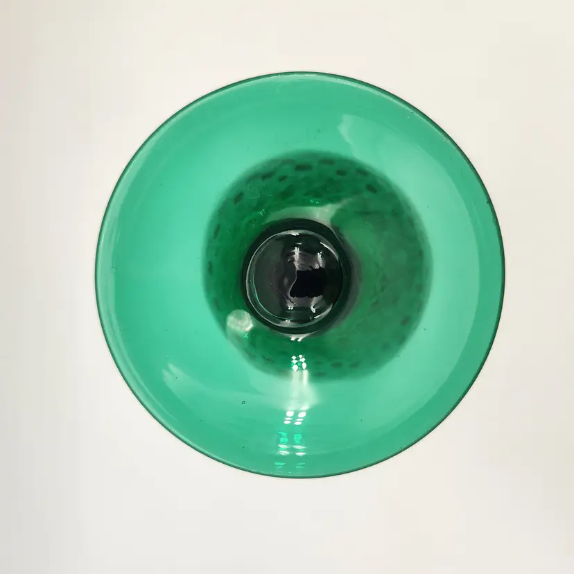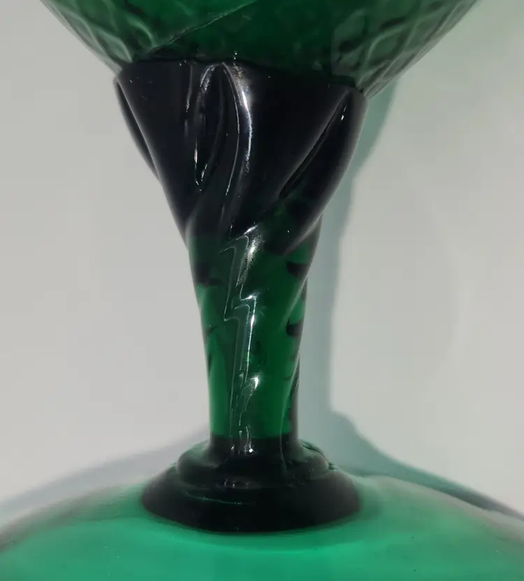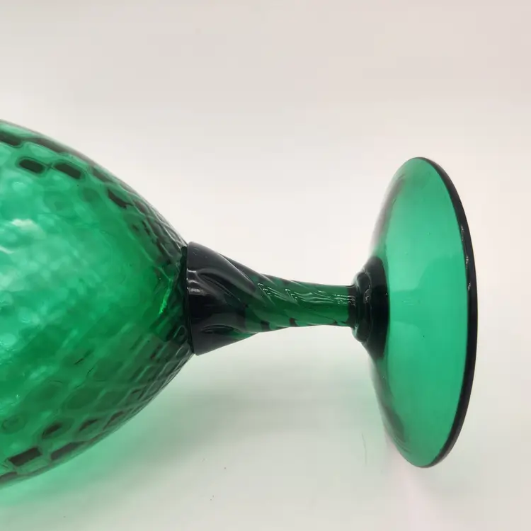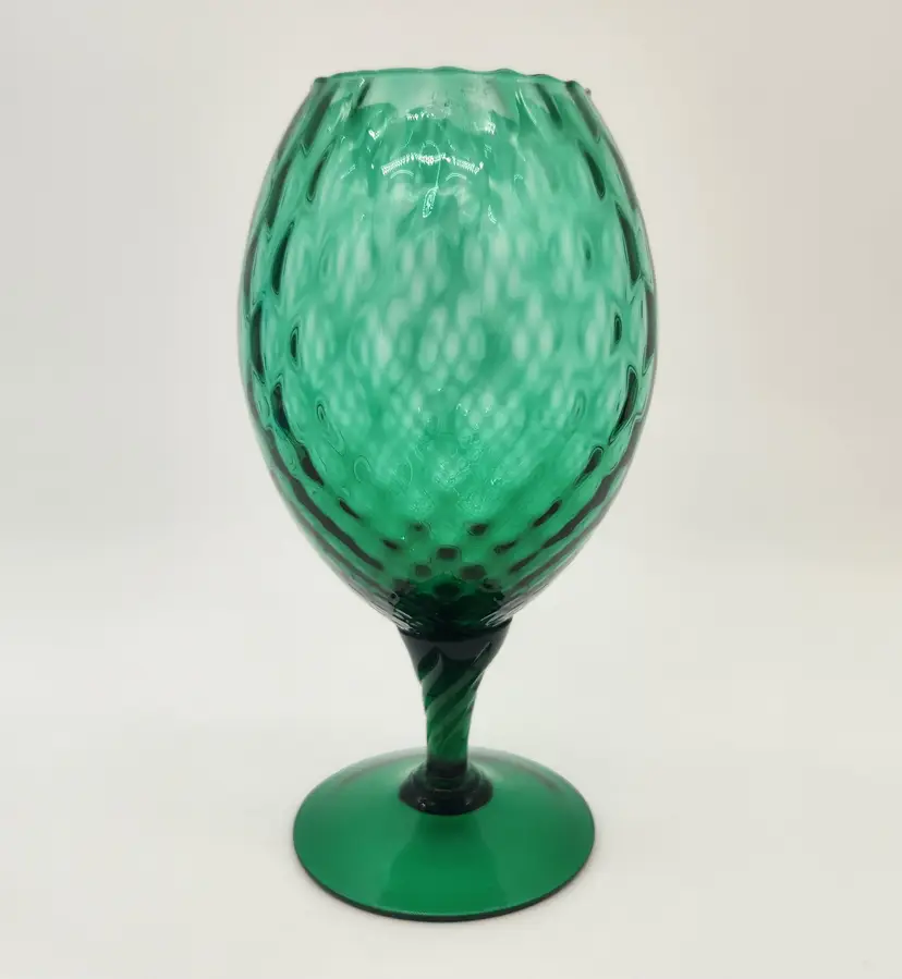This handblown piece has so many beautiful features: from the delicately-scalloped rim, to the exquisite diamond design, to the to the twisted tapered stem. Measurements: 9" rim to base; 2 7/8" diameter at rim; 4 1/2" diameter at widest point of bowl; 3 1/2" diameter at base; 2 1/4" length of stem Excellent condition: no chips or cracks. One large bubble in bowl made during creation (see photo). From a Smoke Free Environment. Item shown is the exact item you will receive. Ships from Northeast Ohio.