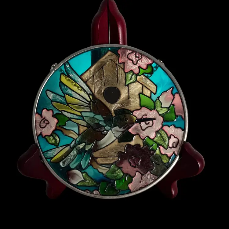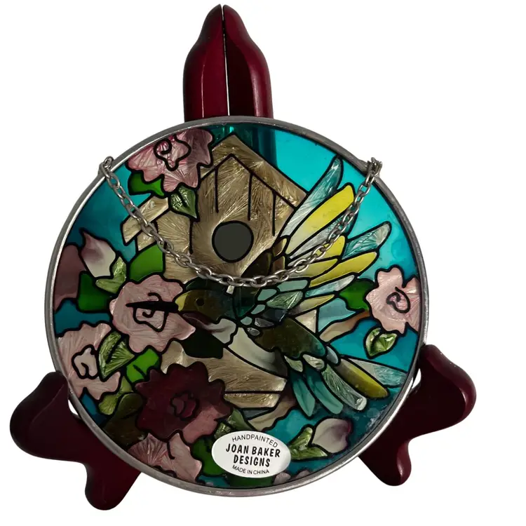 ๐ Artist: Joan Baker ๐ฟ Design: Hummingbird ๐ Size: 4.5" diameter ๐ Hanging: Includes chain for easy display ๐ฆ Condition: Excellent