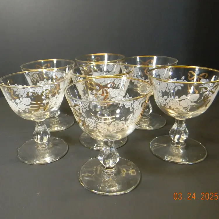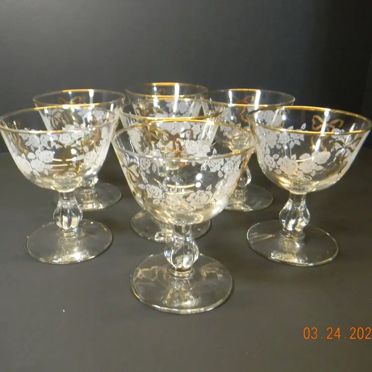 For Weddings or Holidays Celebrations these will make your table look gorgeous. 7 Cocktail\Champagne\ Sherbert Glassware. 4 1/2 in Tall x 2 1/2 in bottom wide Used condition No Chips or Cracks see photos The difference in computer monitors actual colors may vary slightly from those shown