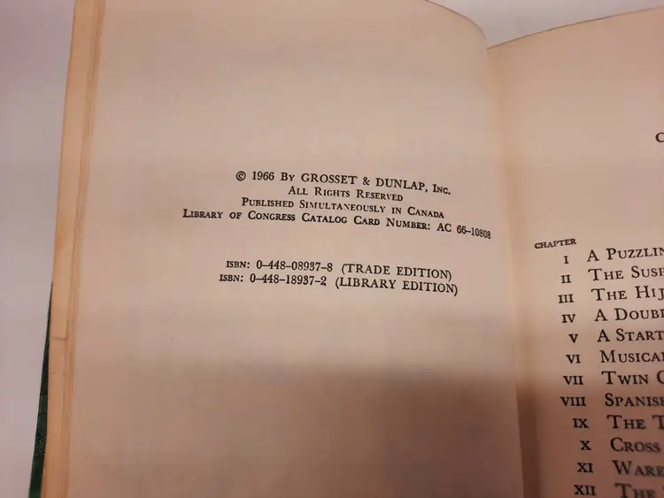 The Clue of the Hissing Serpent was printed in 1974. The Ghost at Skeleton Rock was printed in 1966.