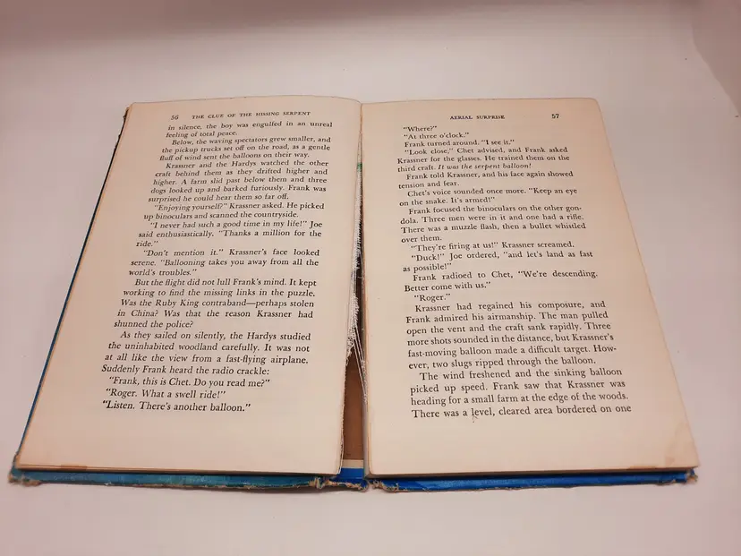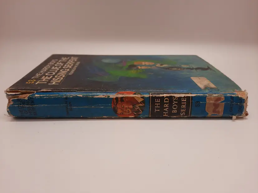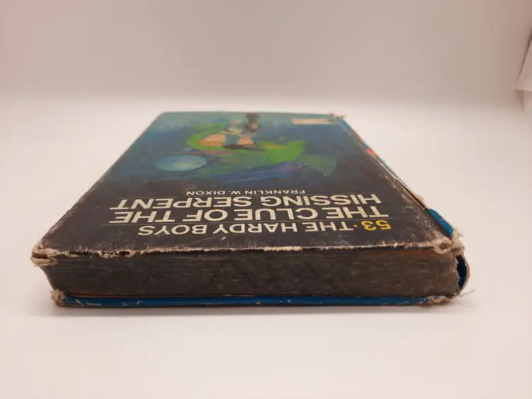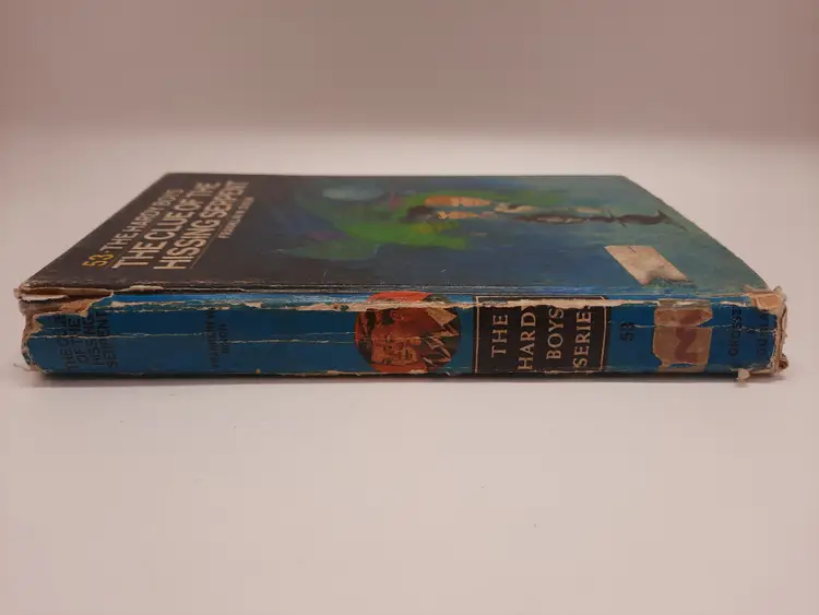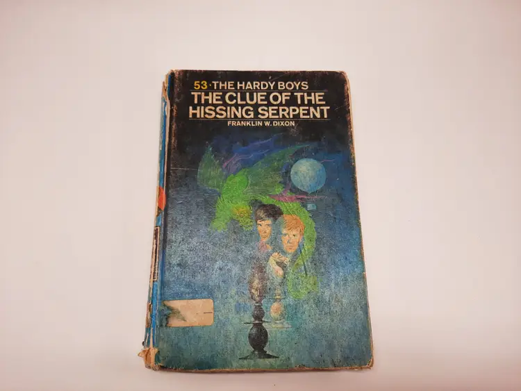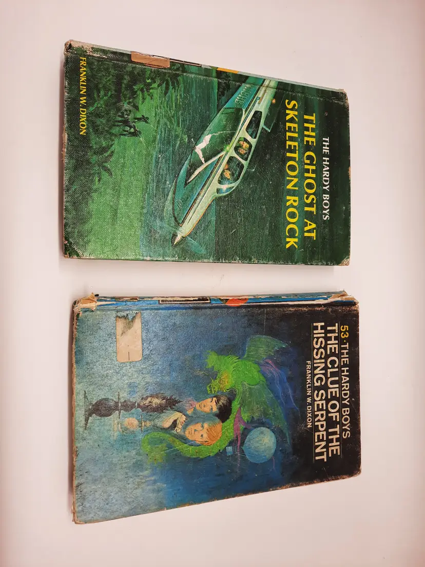 Lot of 2 vintage Hardy Boy books. "The Clue of the Hissing Serpent" and "The Ghost at Skeleton Rock" are both is acceptable condition. The binding is loose on "The Clue of the Hissing Serpent". Both show extensive use over the decades.