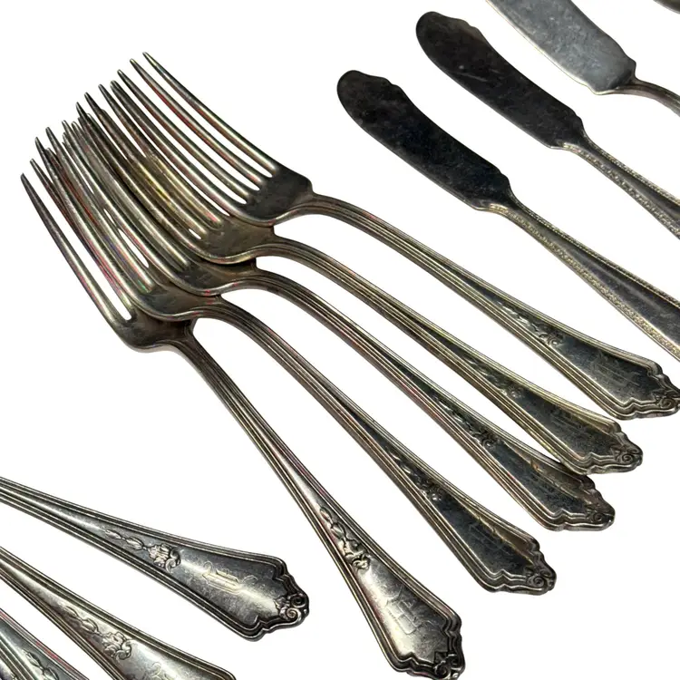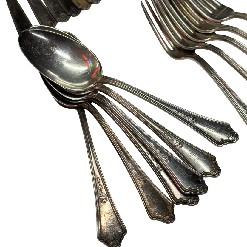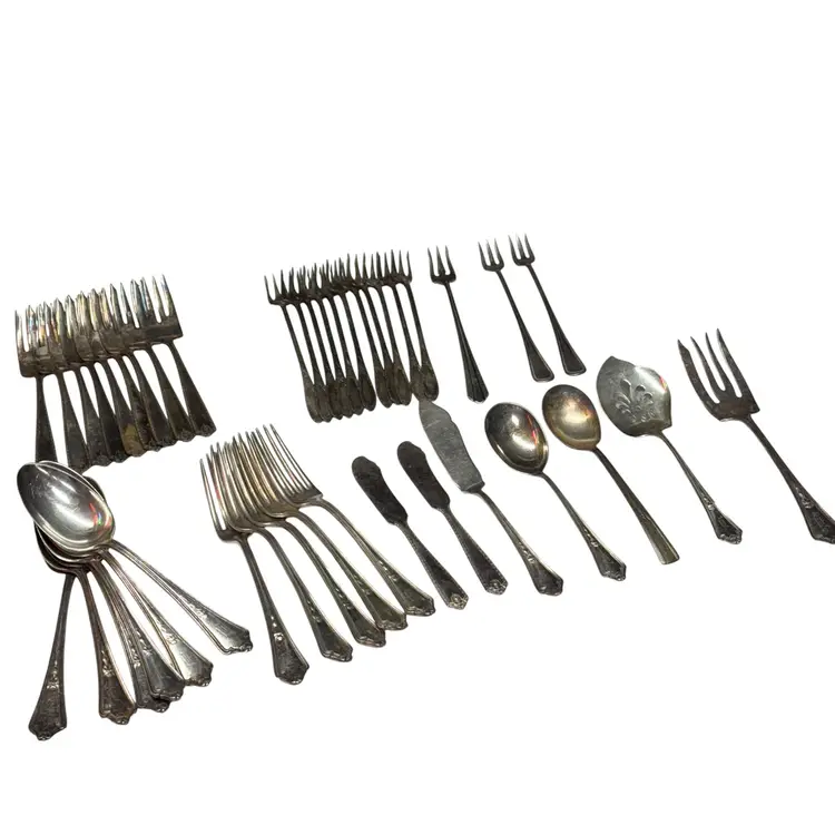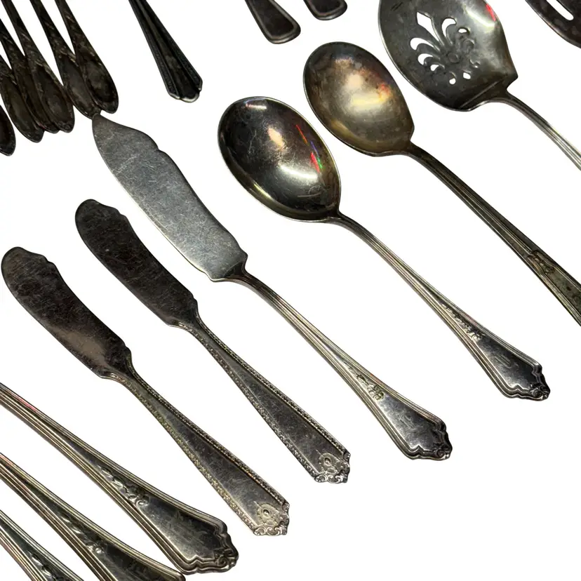 Lot of 41 Silverplate Silverware Oneida, Wallace Luxor Plate, Heirloom Plate