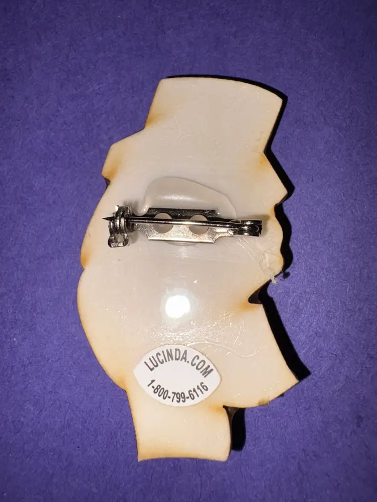 Pin is very detailed and dimensional and is in excellent vintage condition. Includes "Lucinda.com" sticker on back.