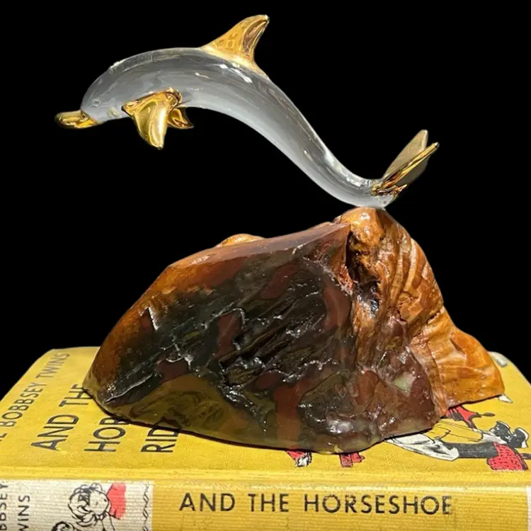 Epic piece! Please note that the dolphin is clear glass. It is picking up background color in the pictures. It is not that "smokey" color but is perfectly clear.