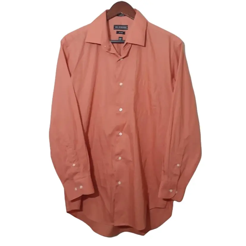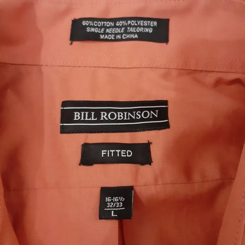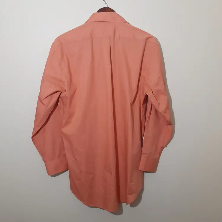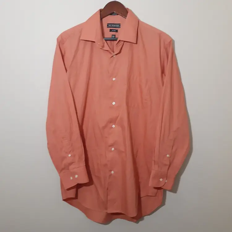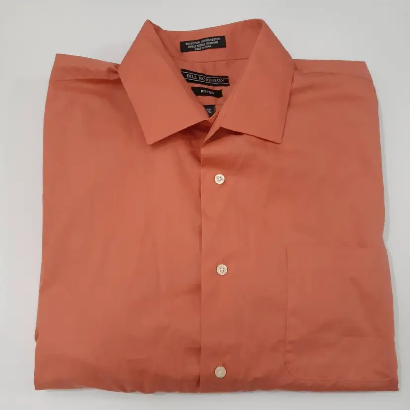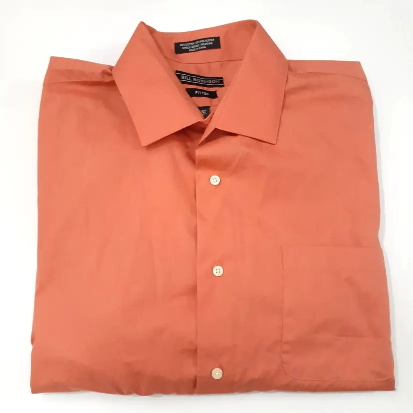Bill Robinson mens dress shirt size L 16 coral orange fitted button up good pre-loved condition
