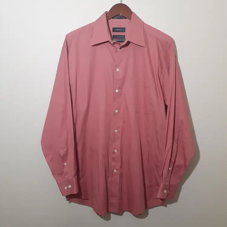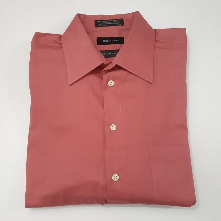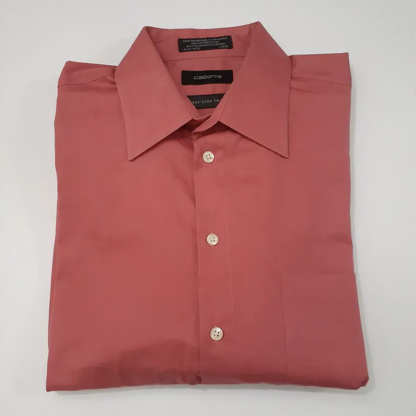 Claiborne mens dress shirt size L 16.5 coral button up long sleeve easy care twill good pre-loved condition
