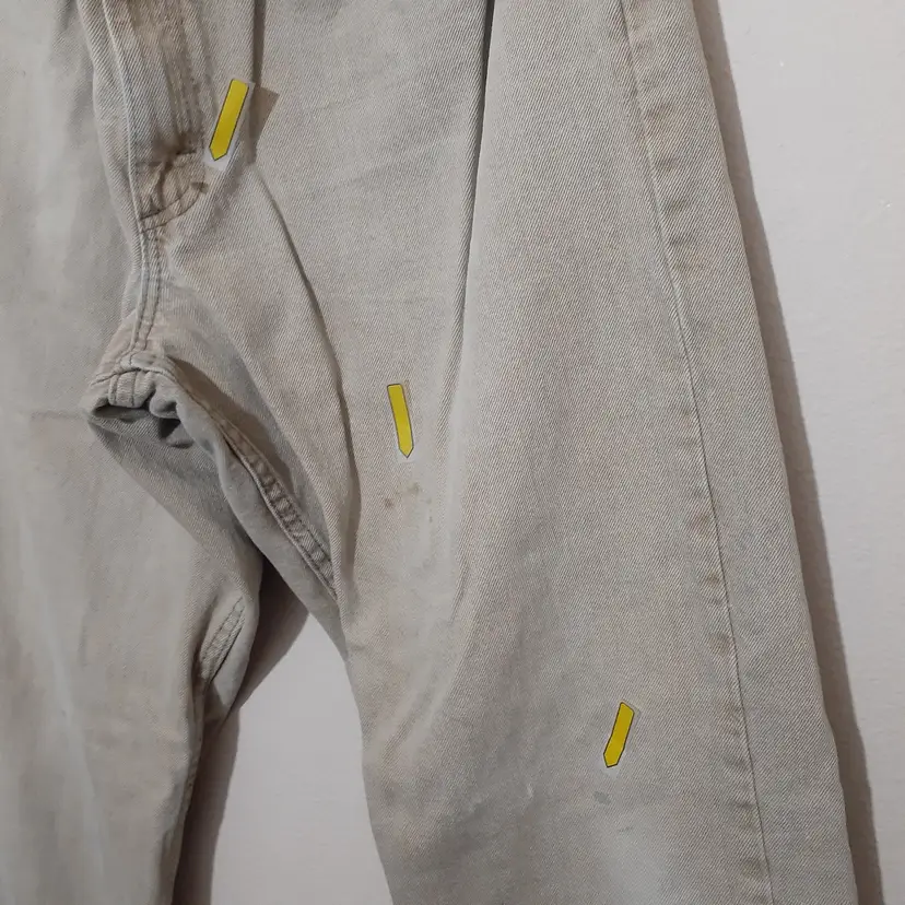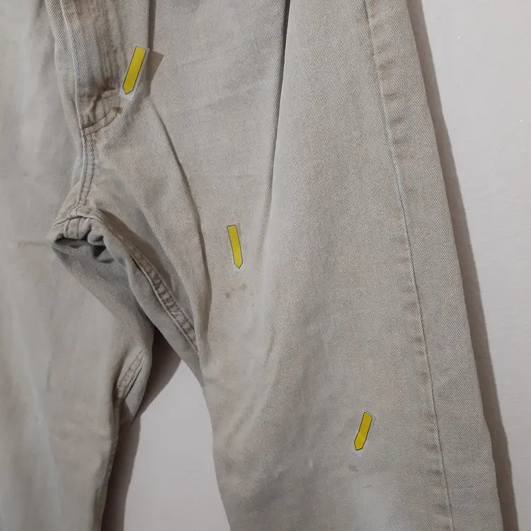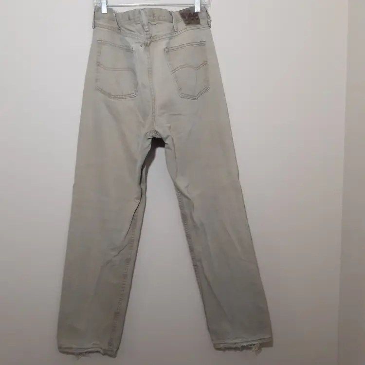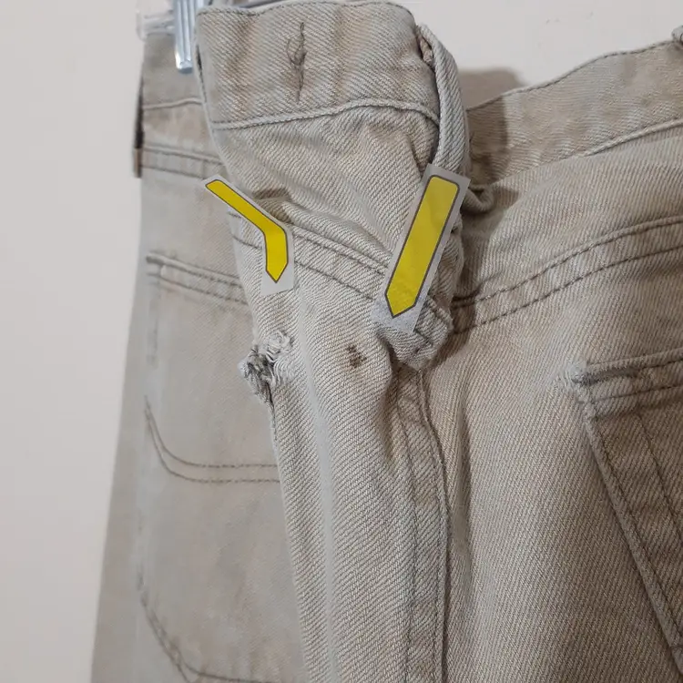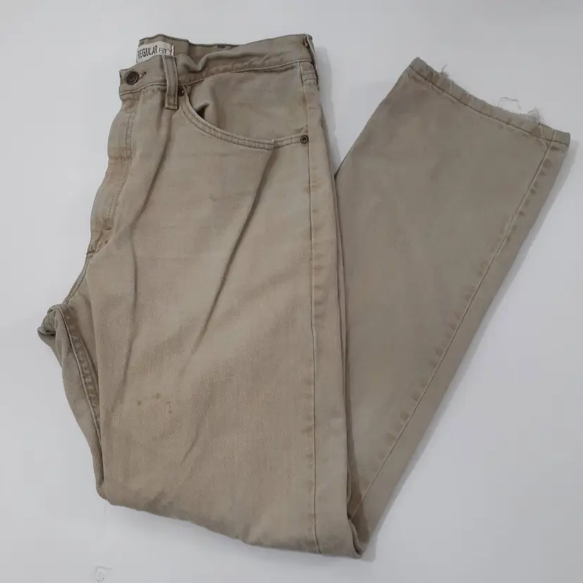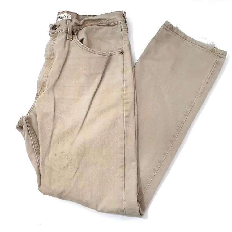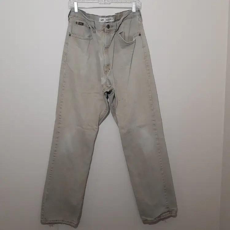 LEE Regular Fit mens straight leg jeans 38x34 tan denim grunge stained distressed 100% cotton, no stretch, 12" rise, stained and frayed as seen in photos pre-loved grunge condition