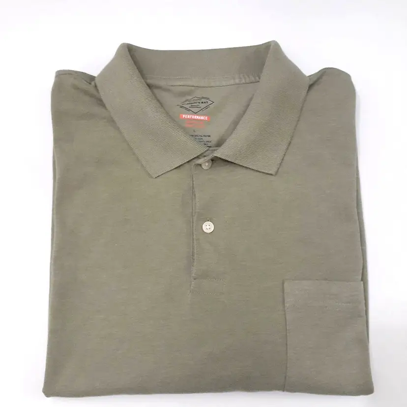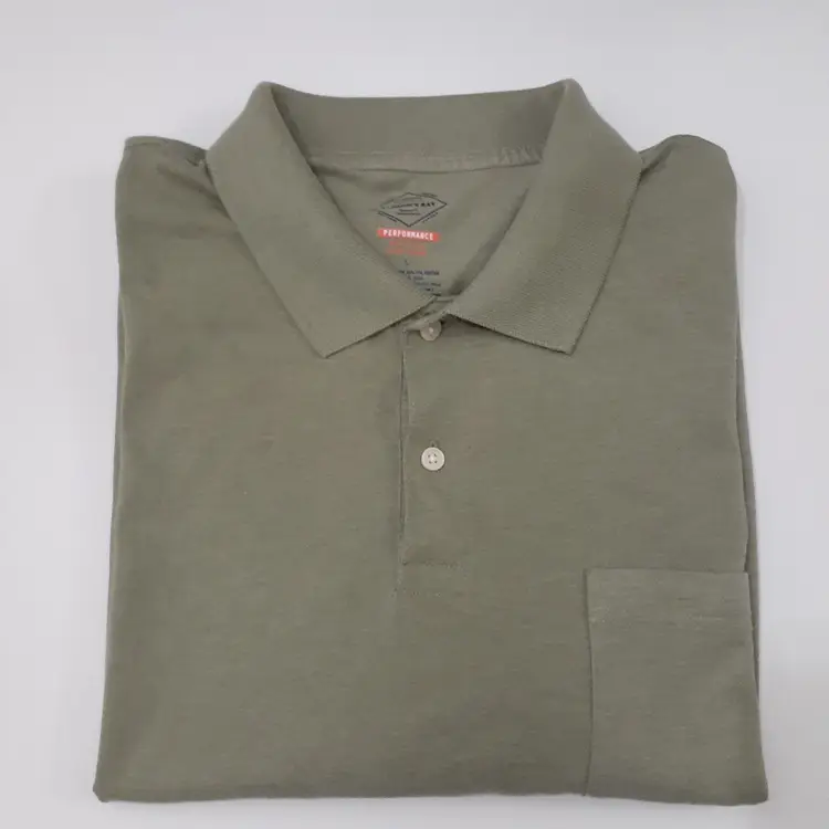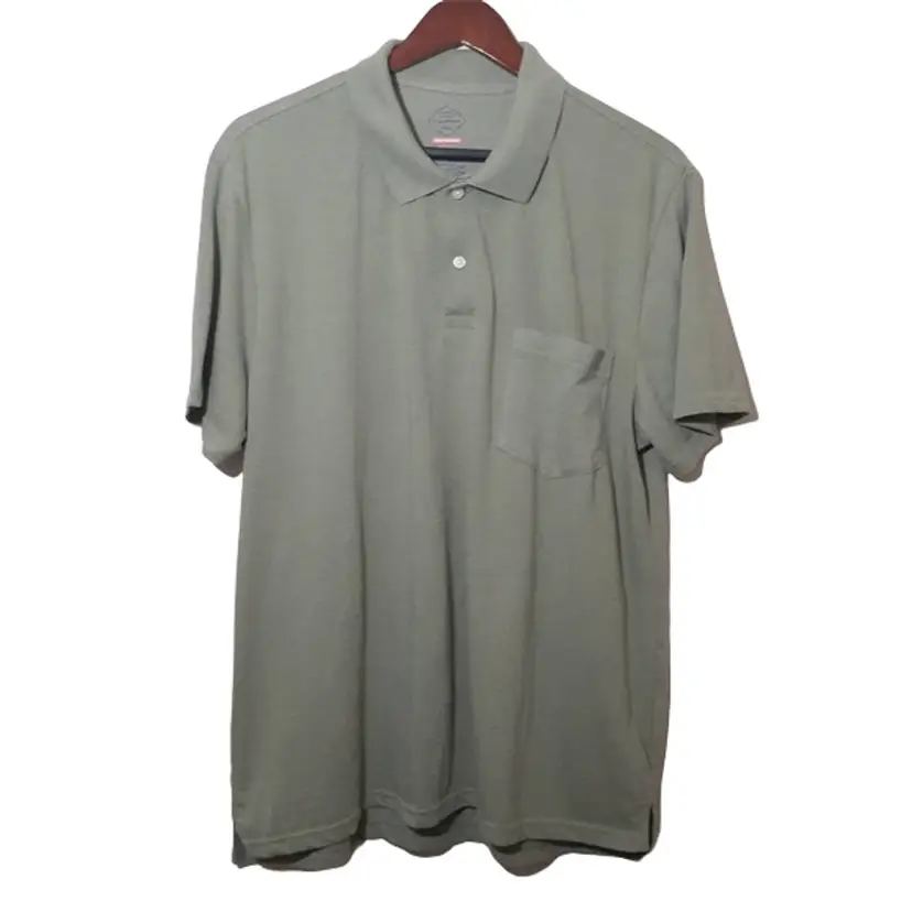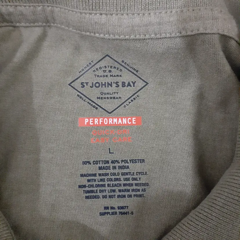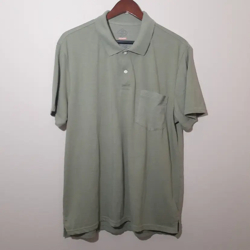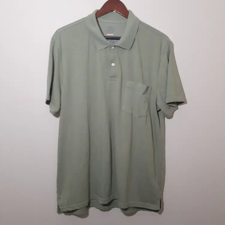 St. John's Bay mens polo shirt size L green short sleeve performance golf rugby Quick Dri Easy Care, one pocket good pre-loved condition