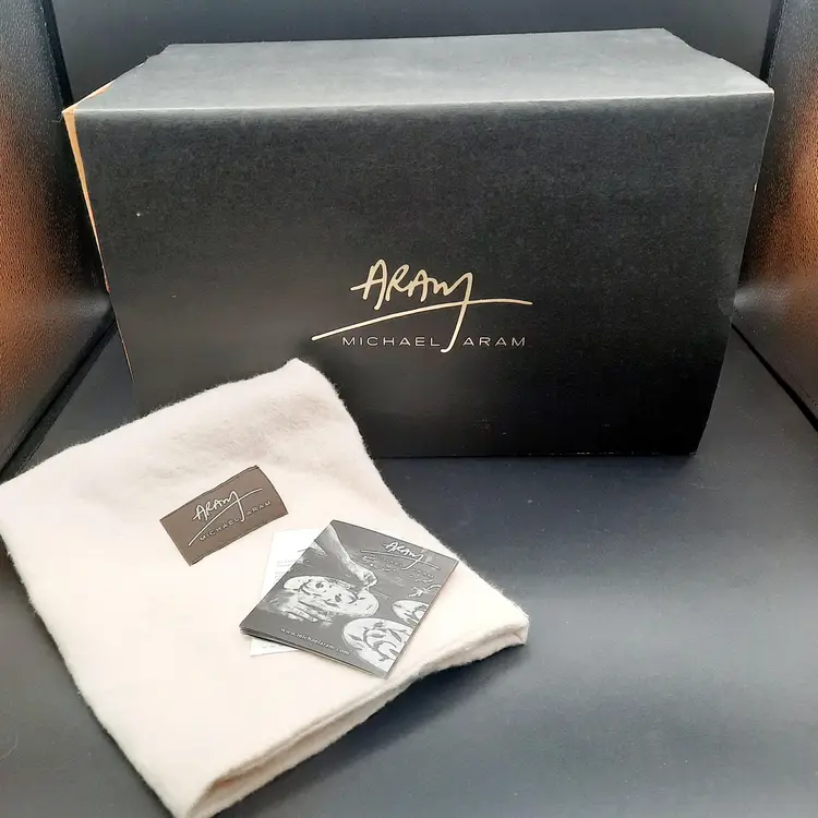 This gorgeous vase is 13 3/4"H x 7 3/4"W at rim, excellent condition with dust cover, box and outer box sleeve (sleeve has a small tear by label).