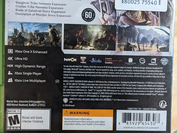 Middle-Earth Shadow of War: Definitive Edition Xbox One X Enhanced