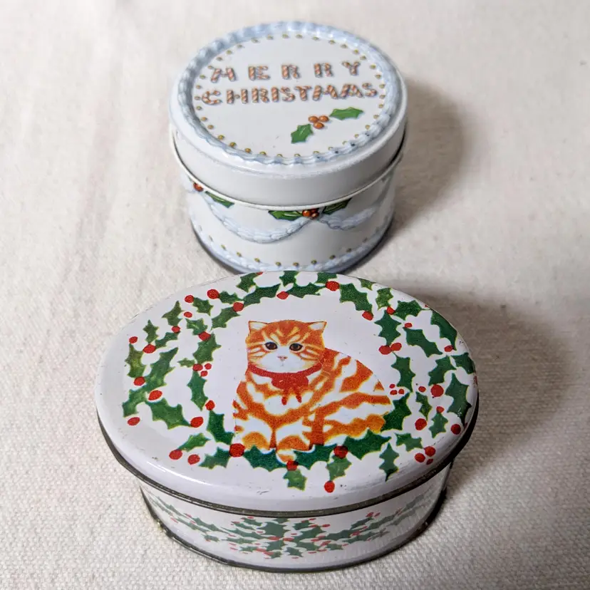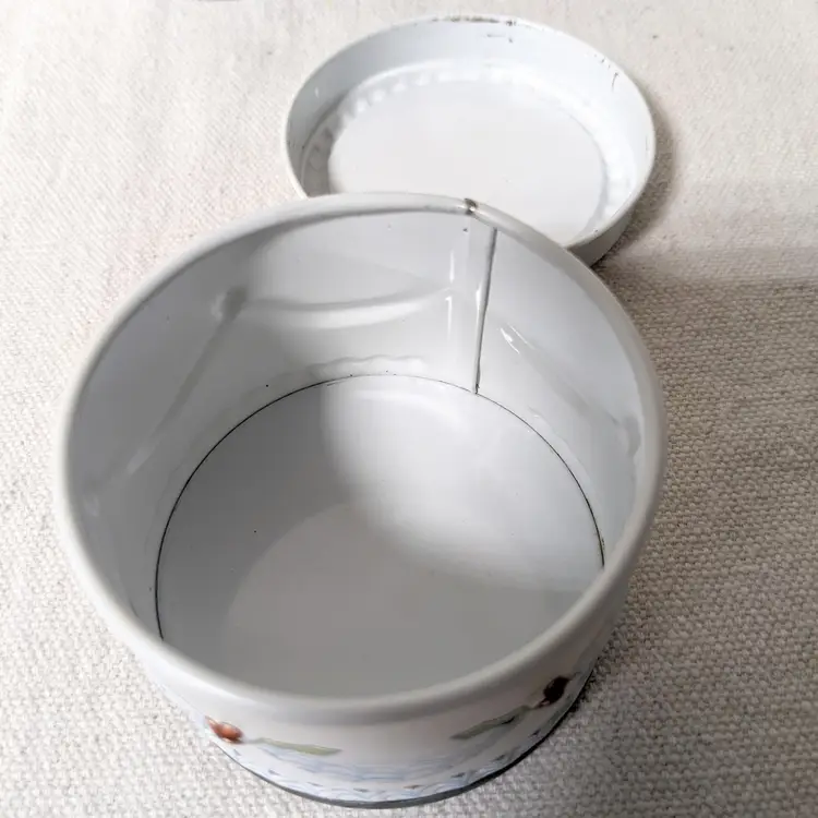 Good vintage condition, but they do have some signs of their life so far including some light paint scratches and wear around the lids and bases. The insides of both tins are very clean and in great condition. Please look at the photos carefully.