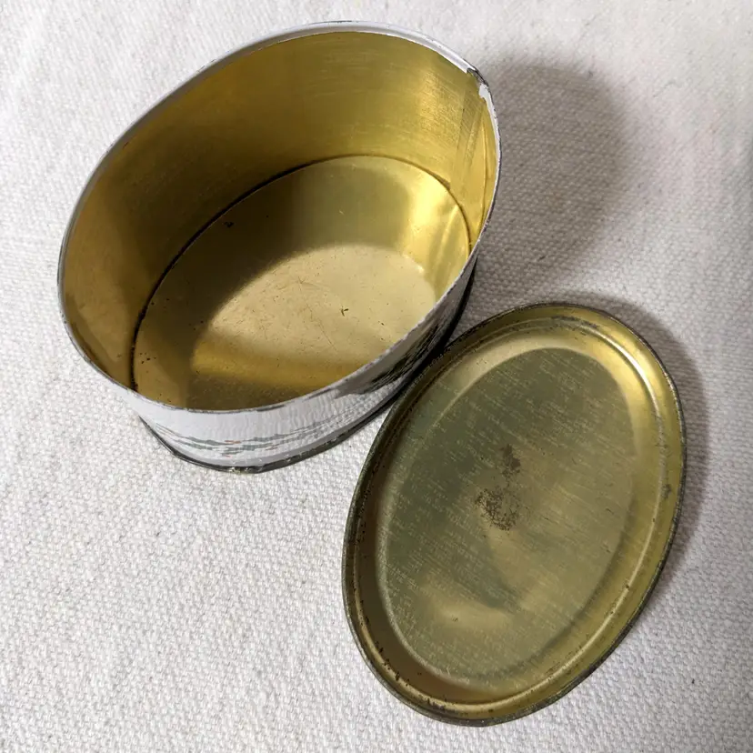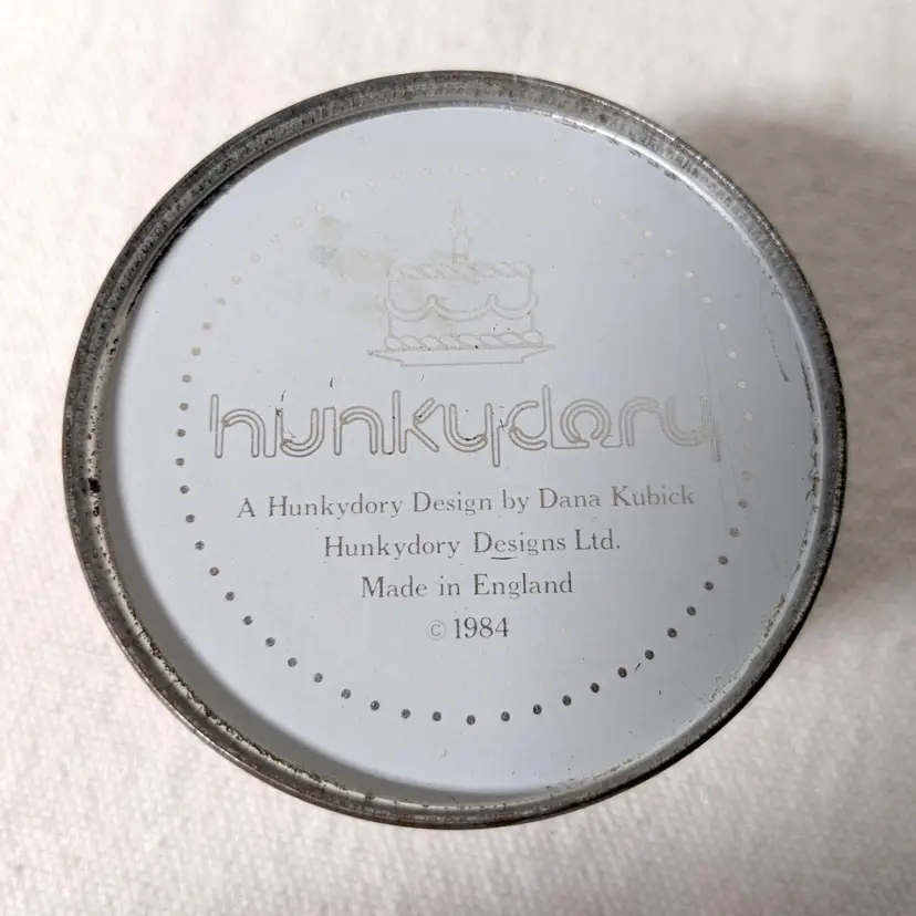 The round tin has all its info printed on the bottom which is really cool and was designed and made in England in 1984.