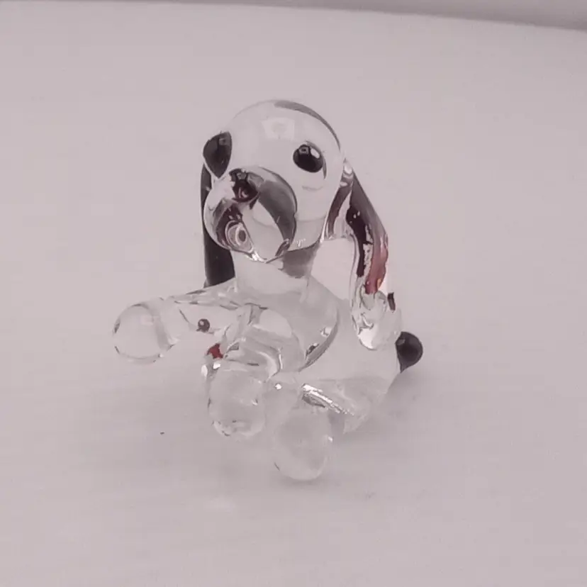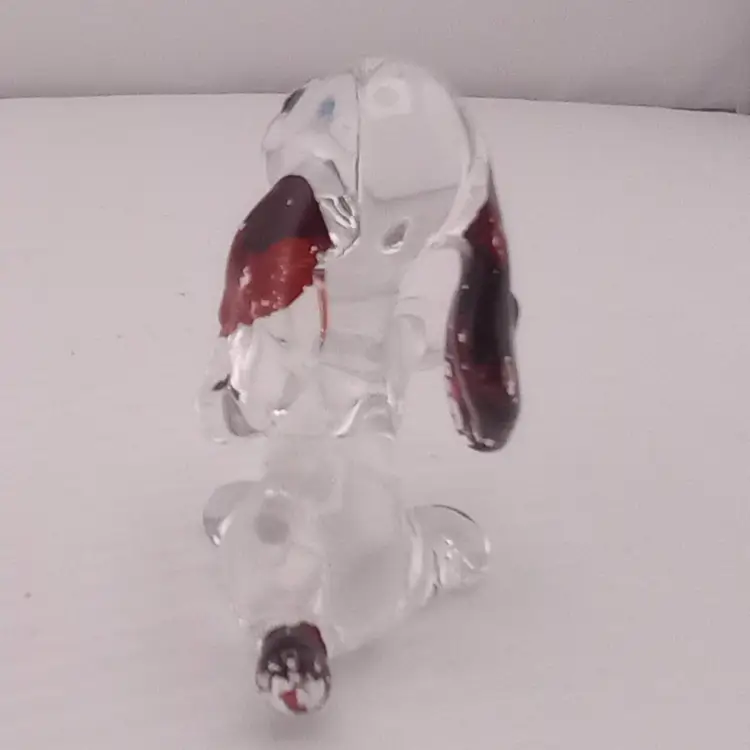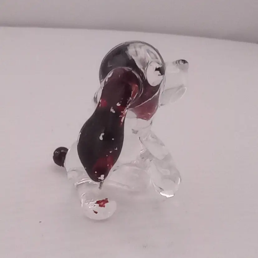 This is an adorable little basset hound made of glass, standing up on his hind legs. He is in very good condition with no chips or cracks, and some color loss on the ears.