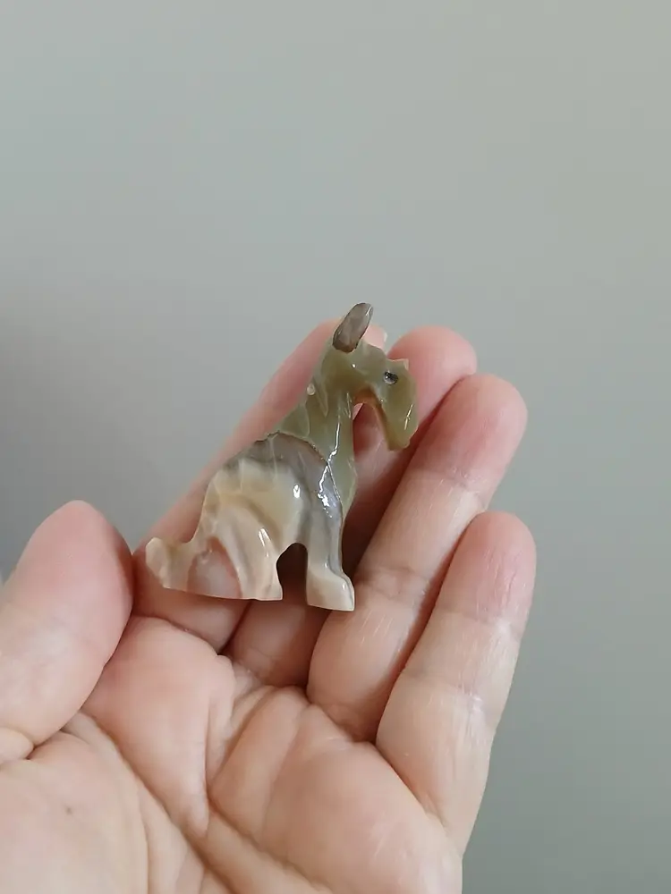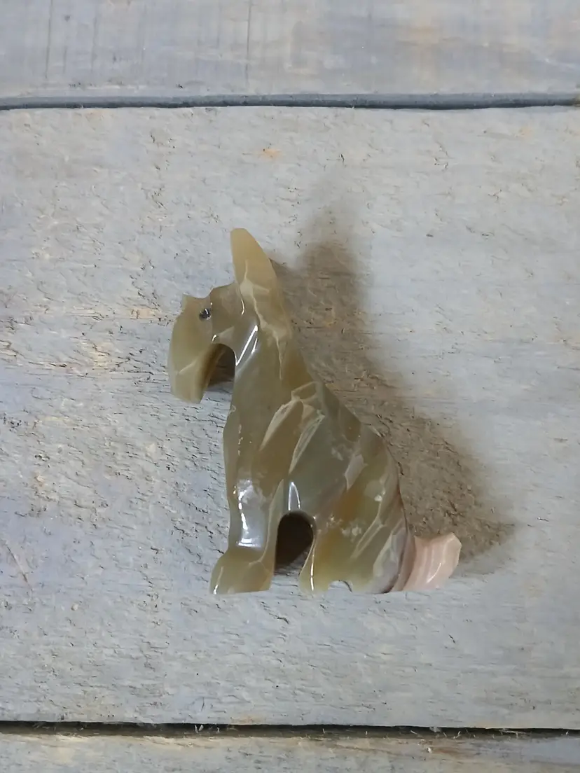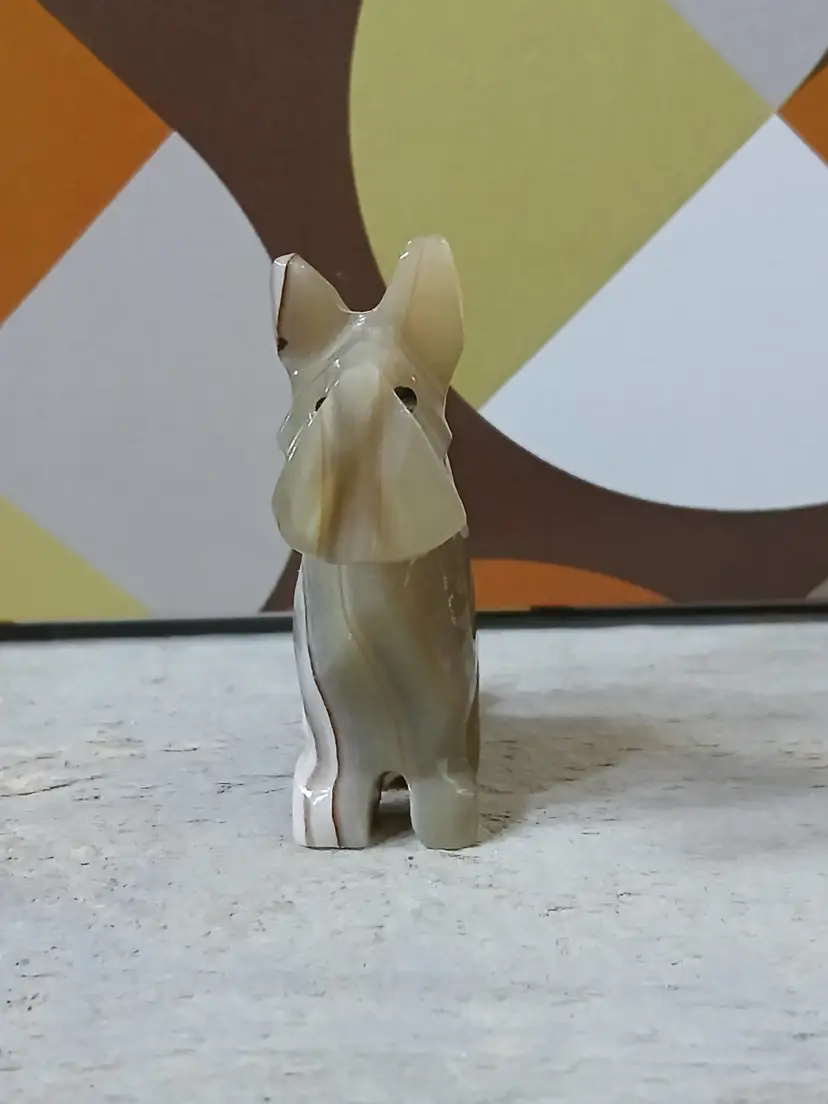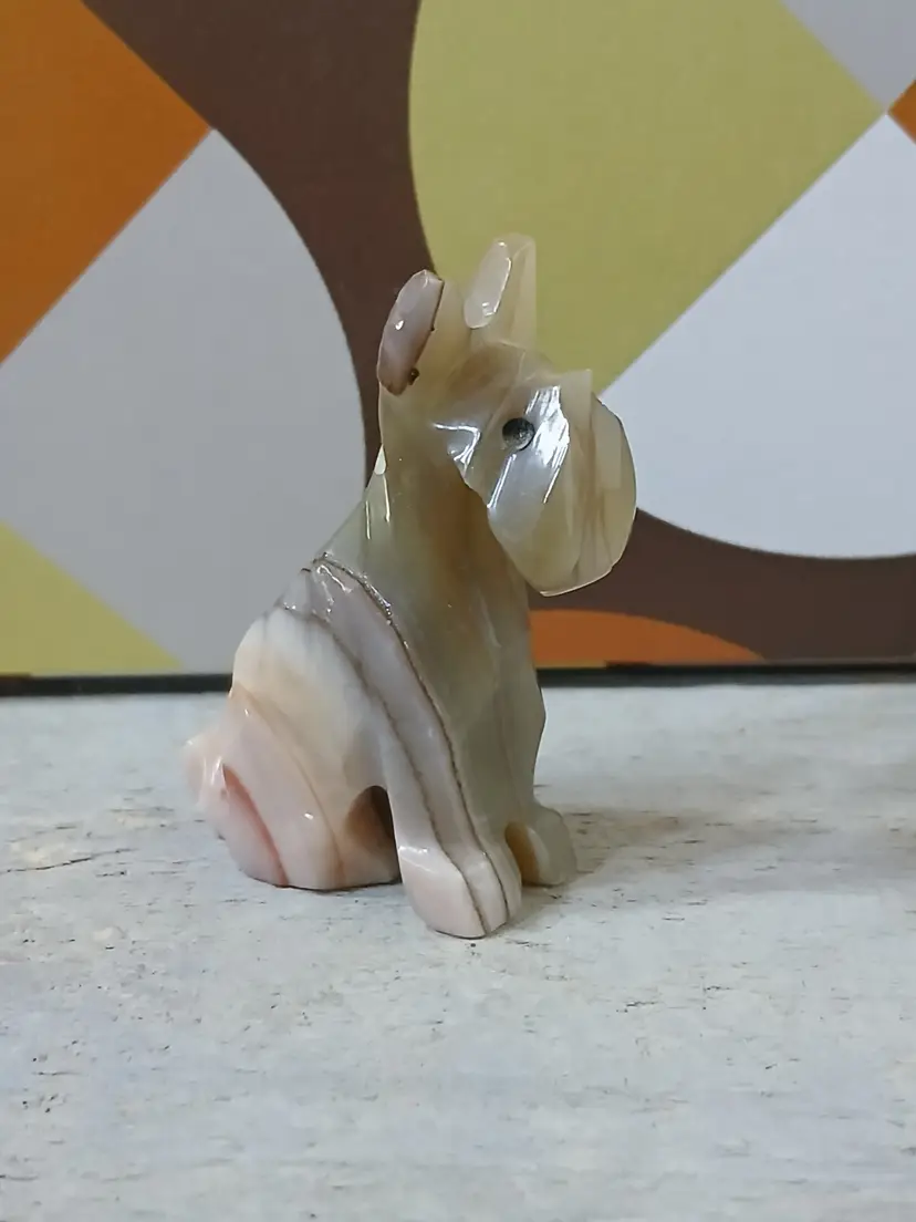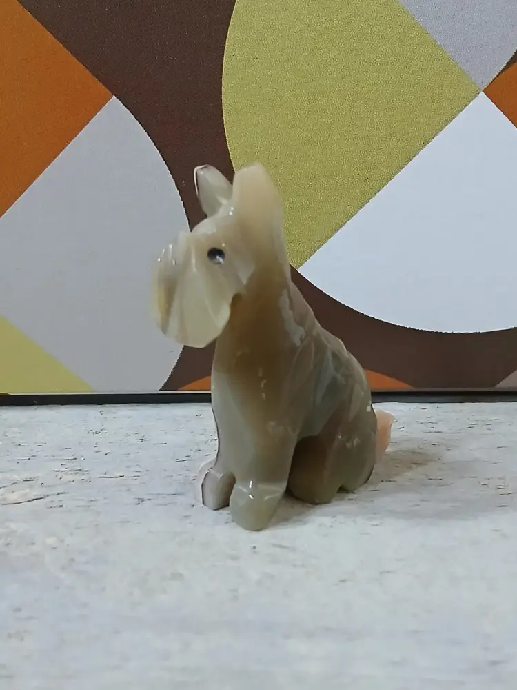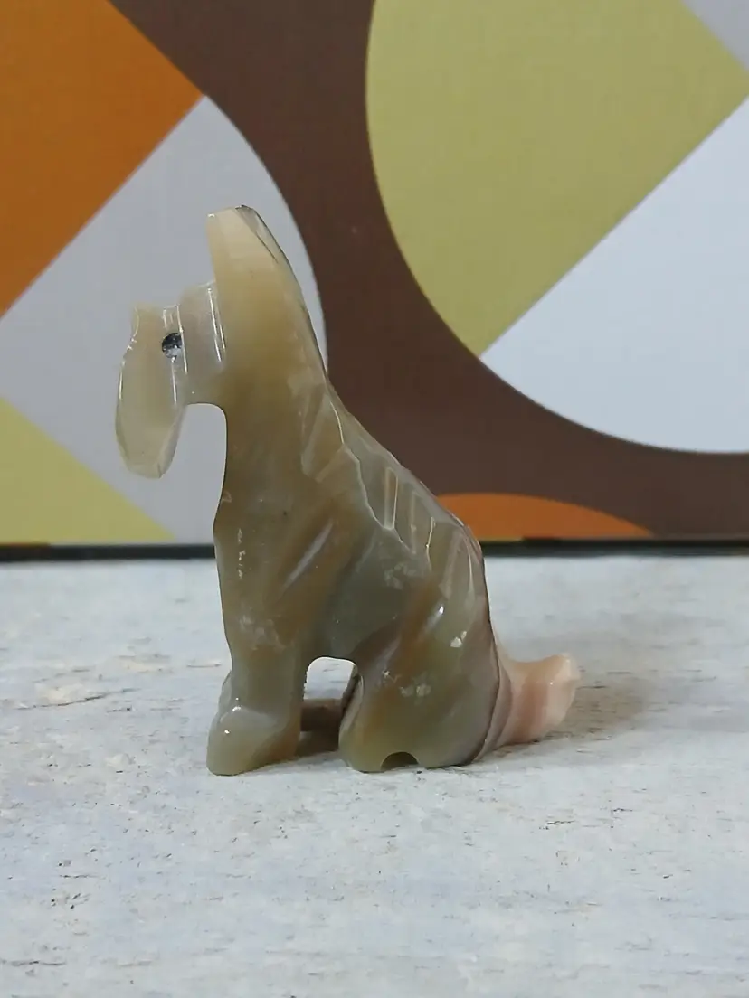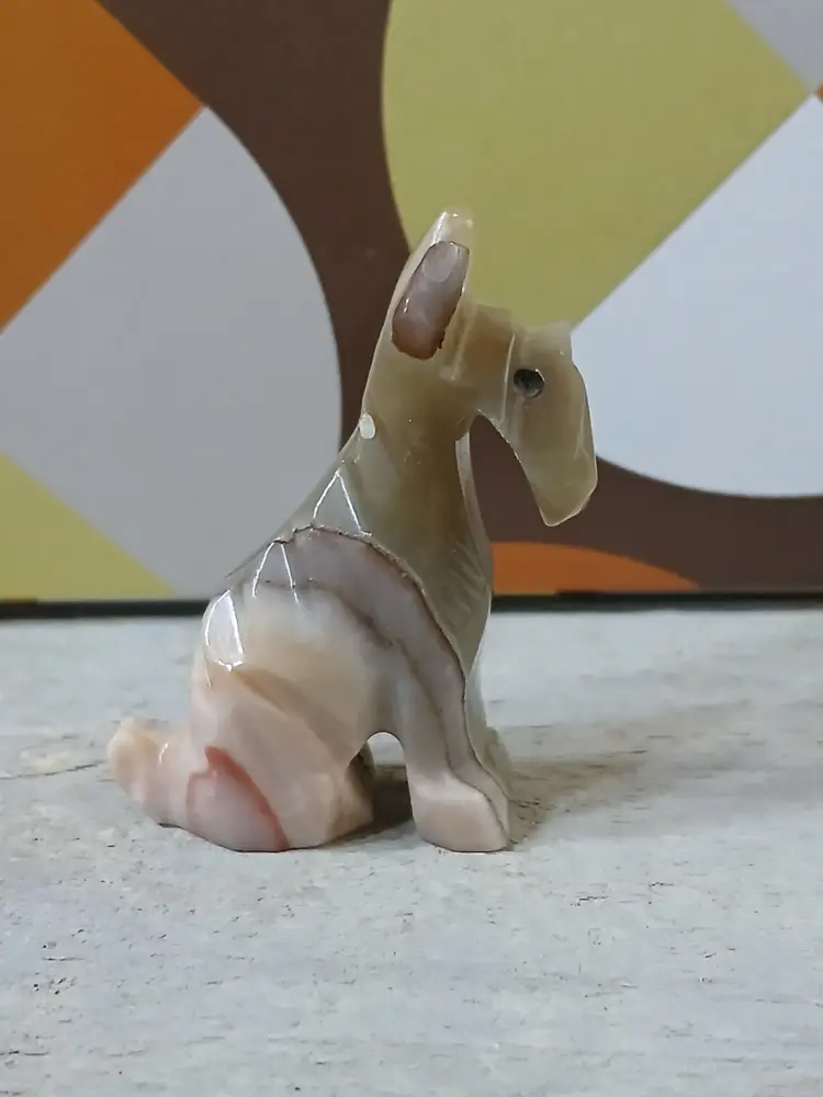 Sweet vintage miniature carved stone scottie dog figurine. Measures approximately 2" high. In very good pre-owned condition.