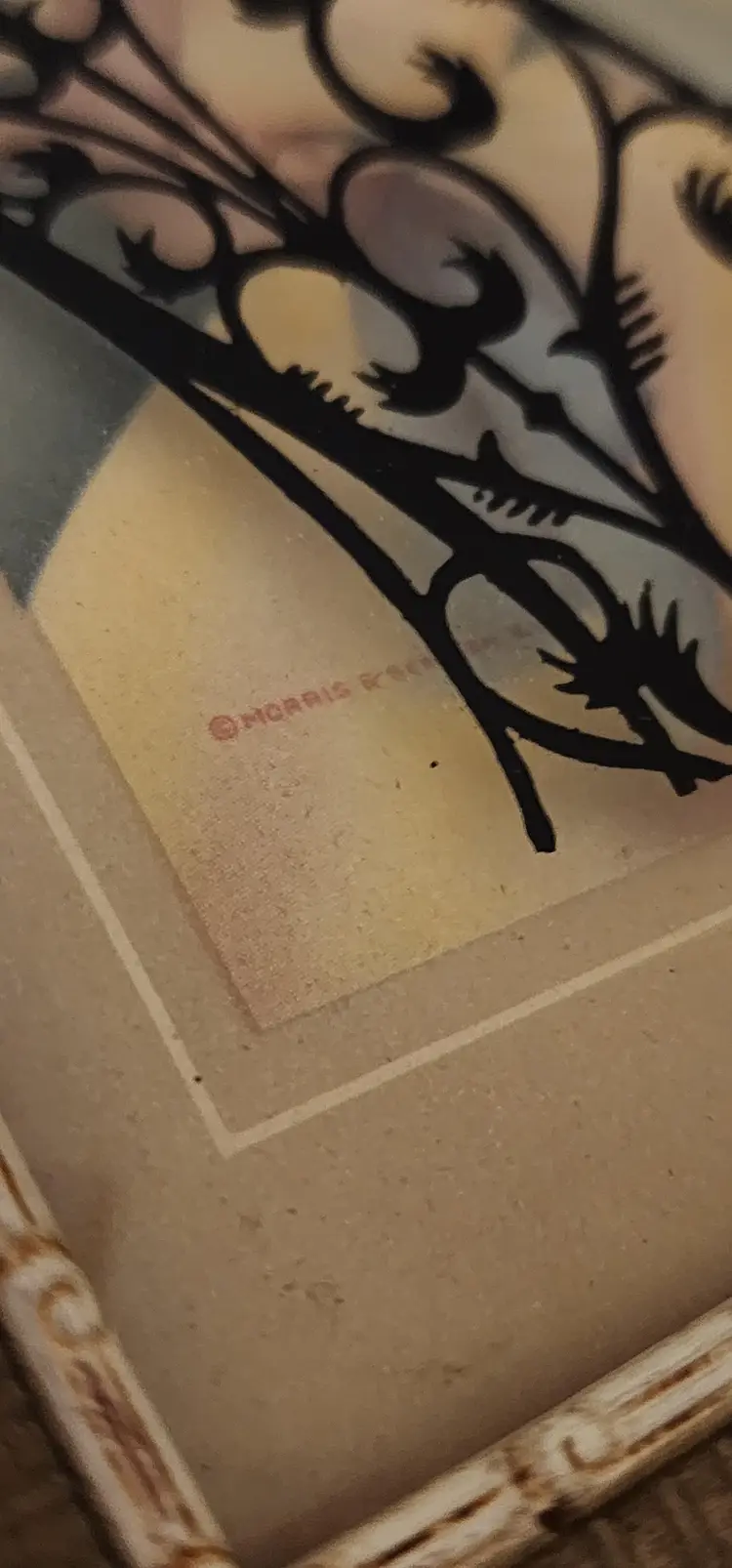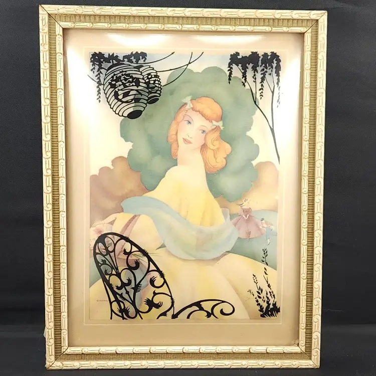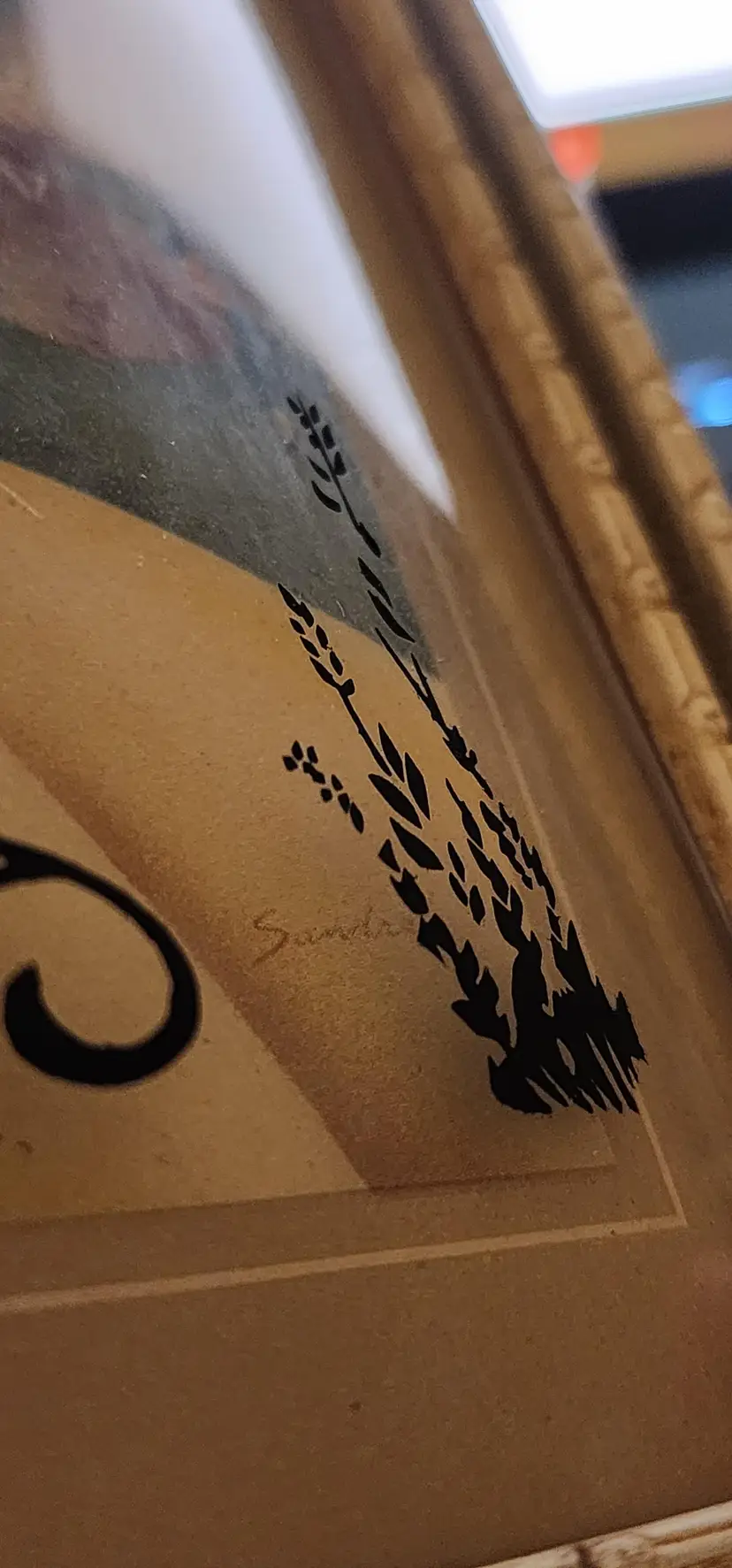 Item is in great condition for the age. Lithograph signed by Sandre´ is in perfect condition. Convex glass is in perfect condition. Frame is handmade and nailed at each corner. There is tape along back. Measures approximately 8.5" x 6.5".