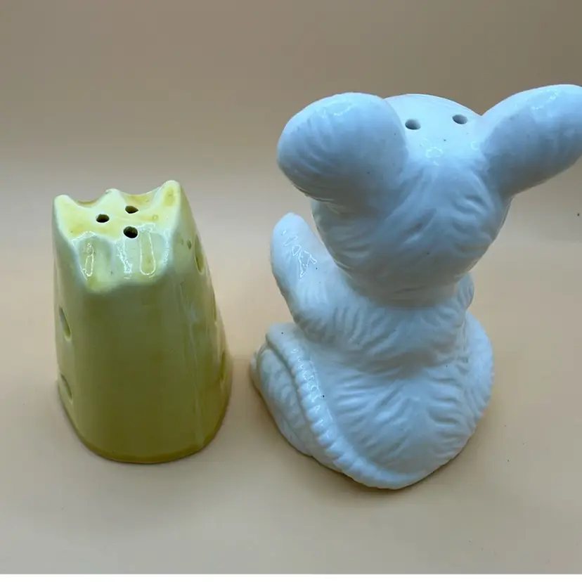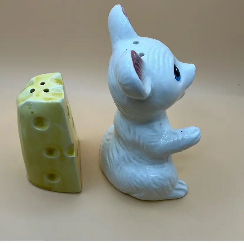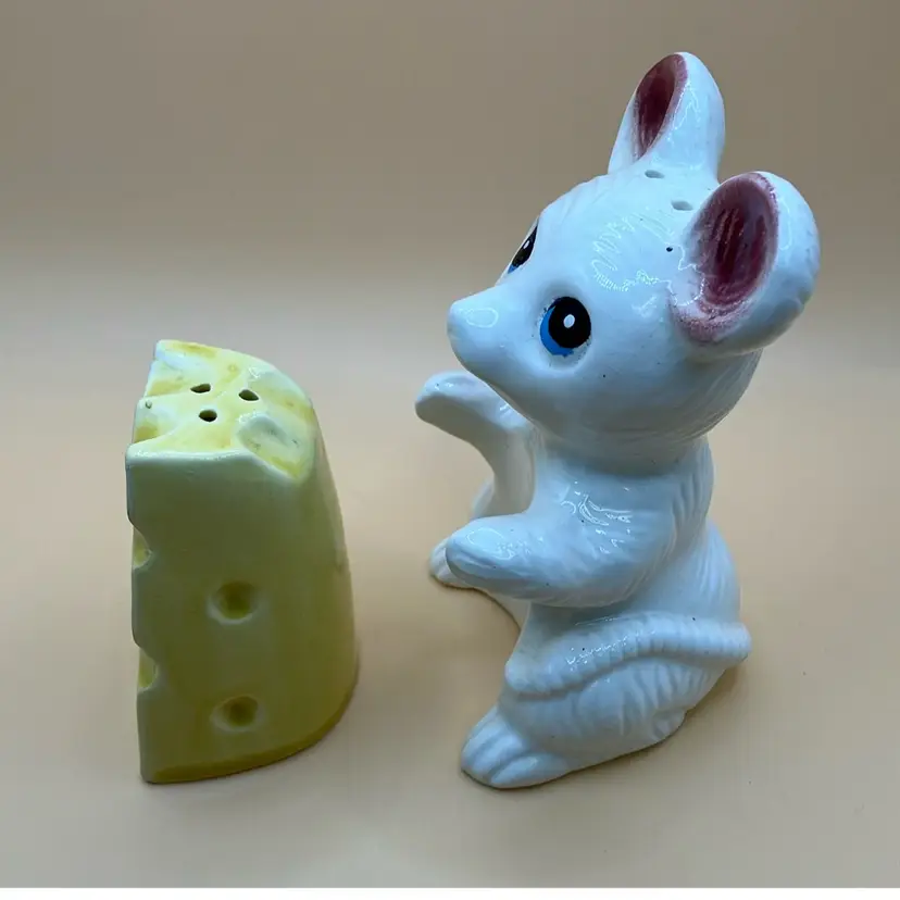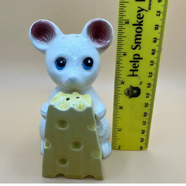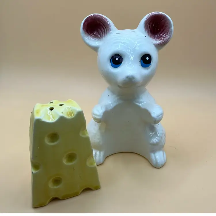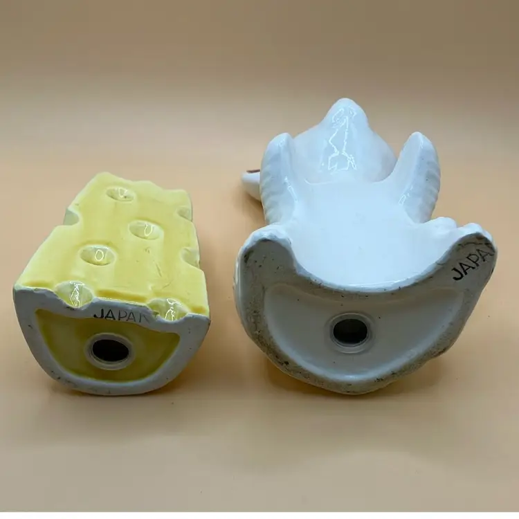 Both mouse and cheese are marked Japan on bottom and have stopper. Good condition. So cute!!