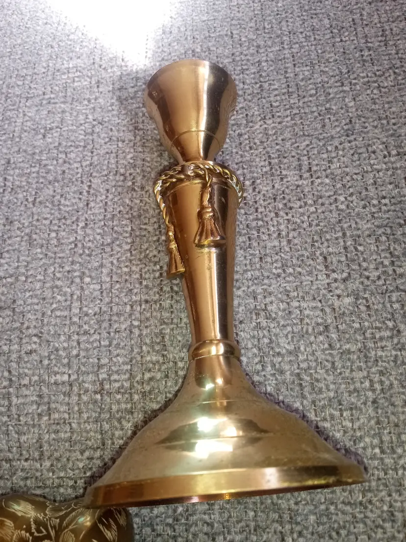 Pretty brass candle stick with brass tied ribbon apprx 7 inches in height