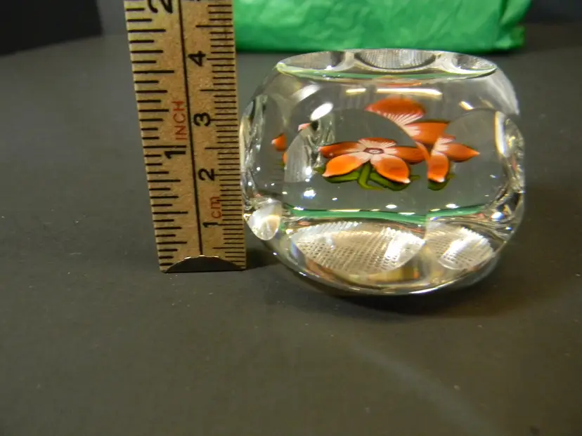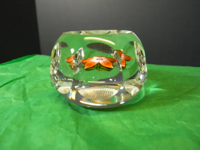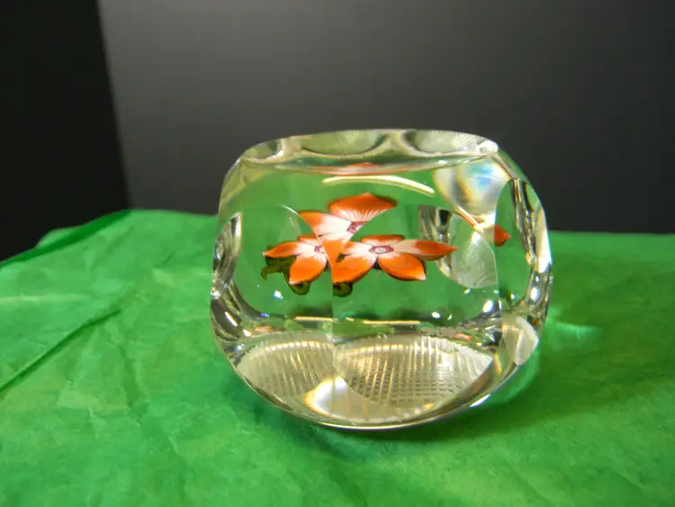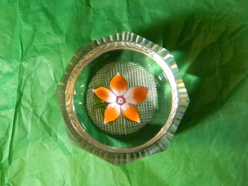 Perthshire Miniature Flower with 5 petals orange in color. has a P in the middle of the flower. No chips or cracks used condition see photos The difference in computer monitors actual colors may vary slightly from those shown