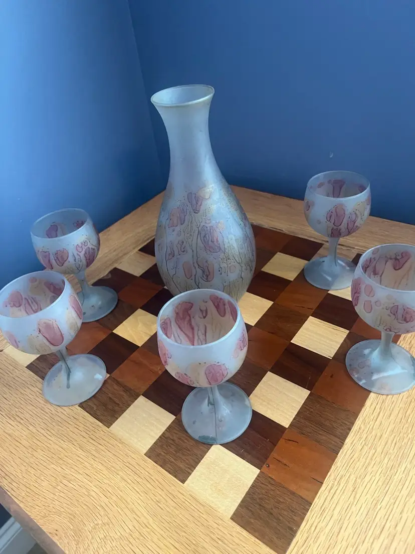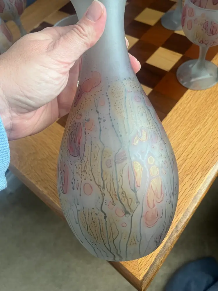 Art Deco, a style that emerged in the 1920s and 1930s, is characterized by rich colors, bold geometric shapes, and lavish ornamentation. In glassware, this often translated to streamlined forms, stylized motifs, and innovative decorative techniques. The use of frosted or satin finishes, combined with hand-painted designs, was a popular way to achieve a sophisticated and modern aesthetic during this era.