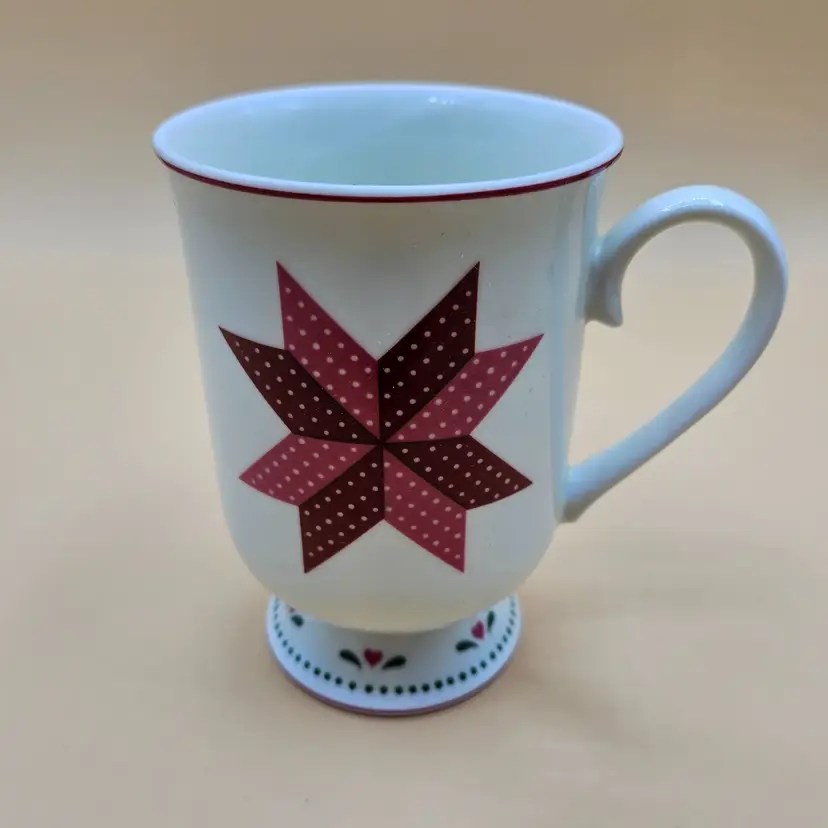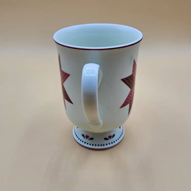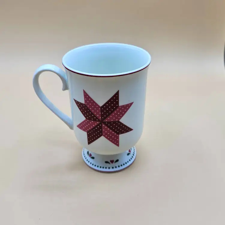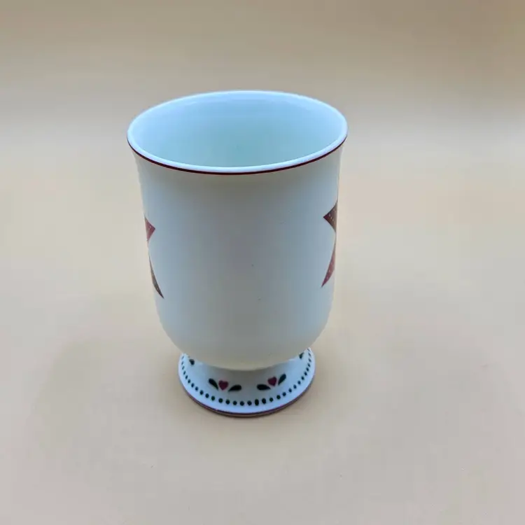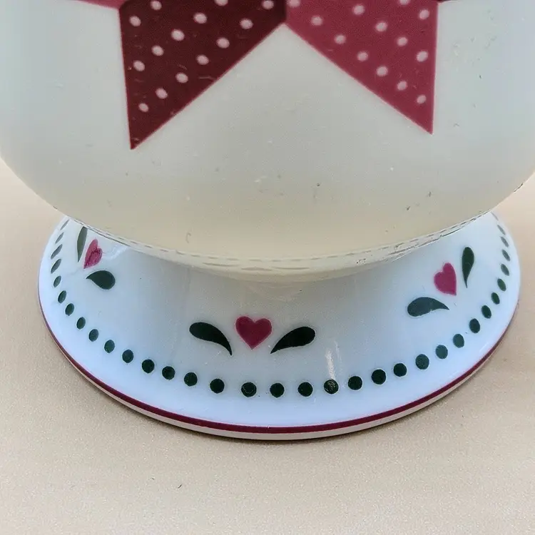 4 3/8"H x 3" in diameter. No chips cracks or repairs. Red trim, star on both sides.
