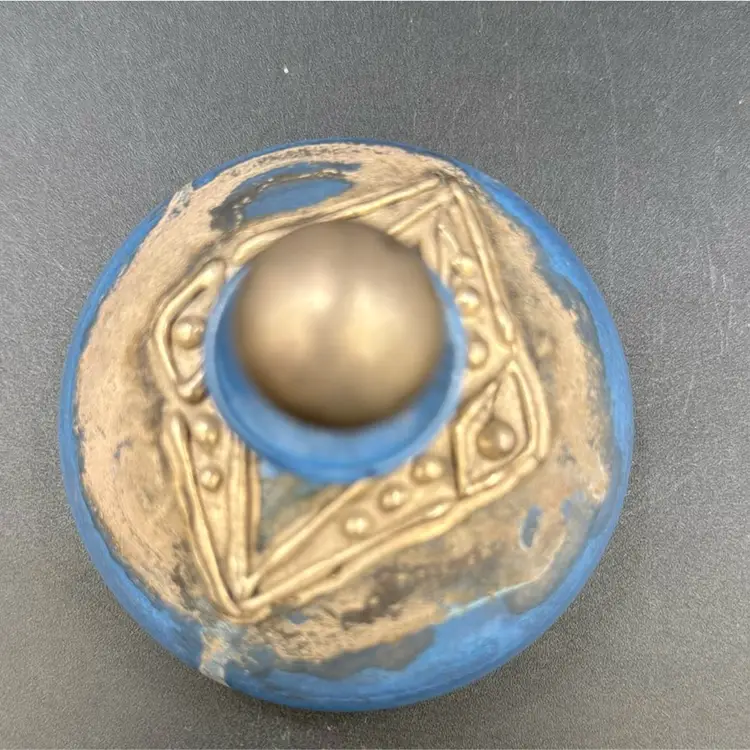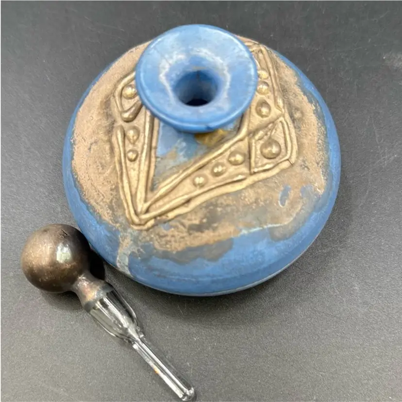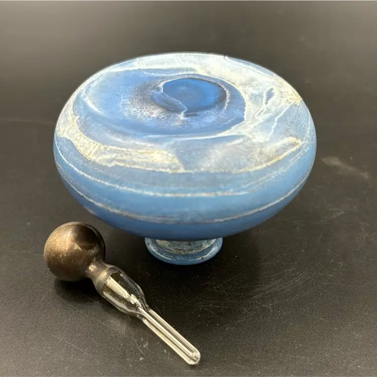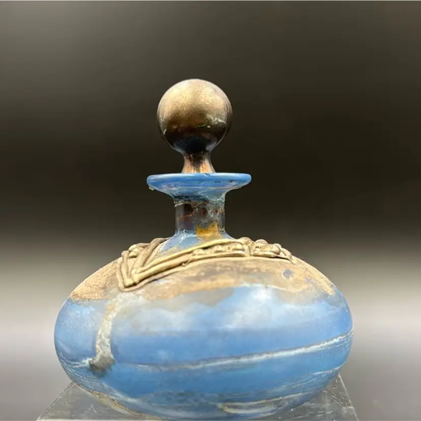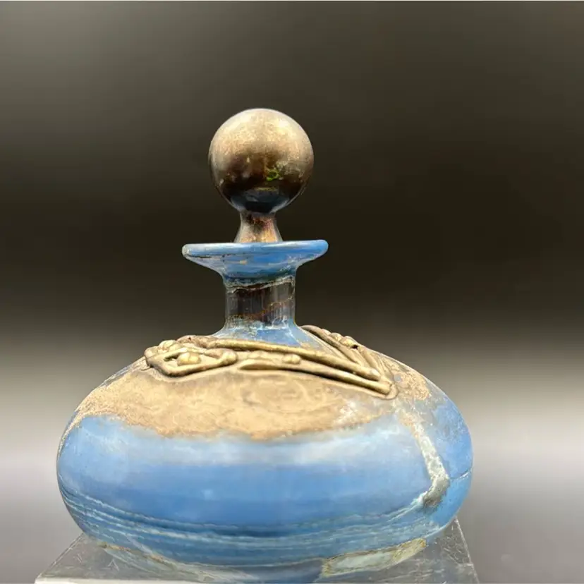 #01 Perfume Bottle With Stopper, Blue Tone With Silver In Tone Accent. Possibly made in Israel has no makers Mark. could not find it anything like it rare peace.