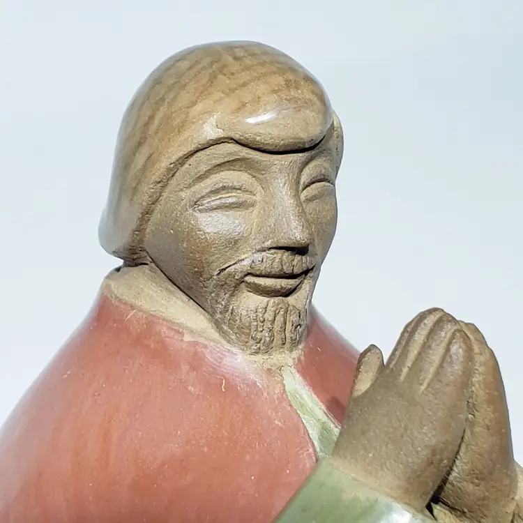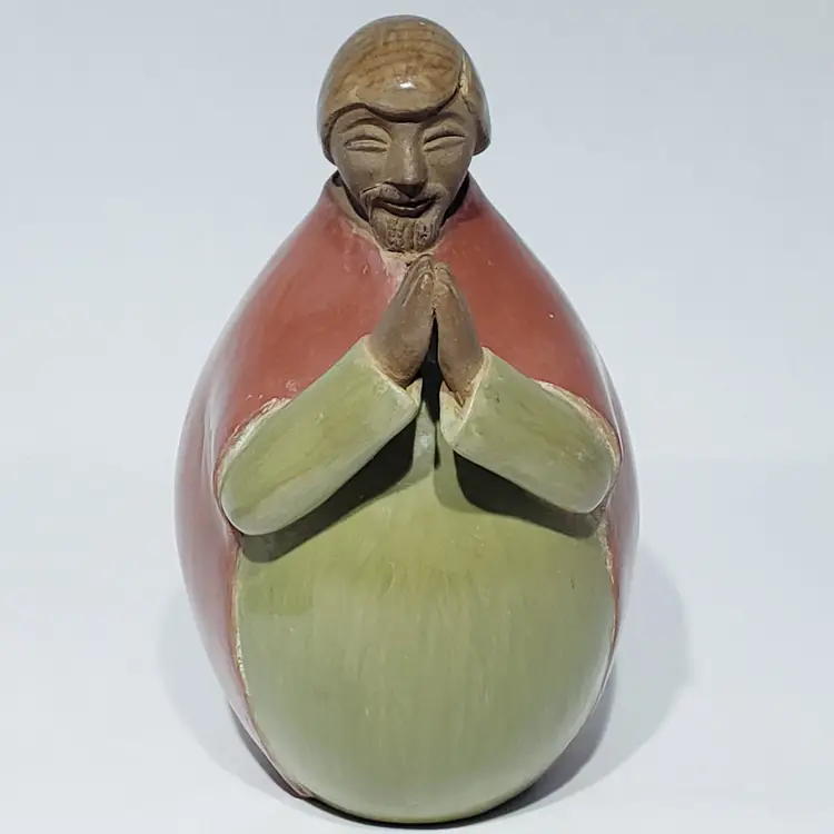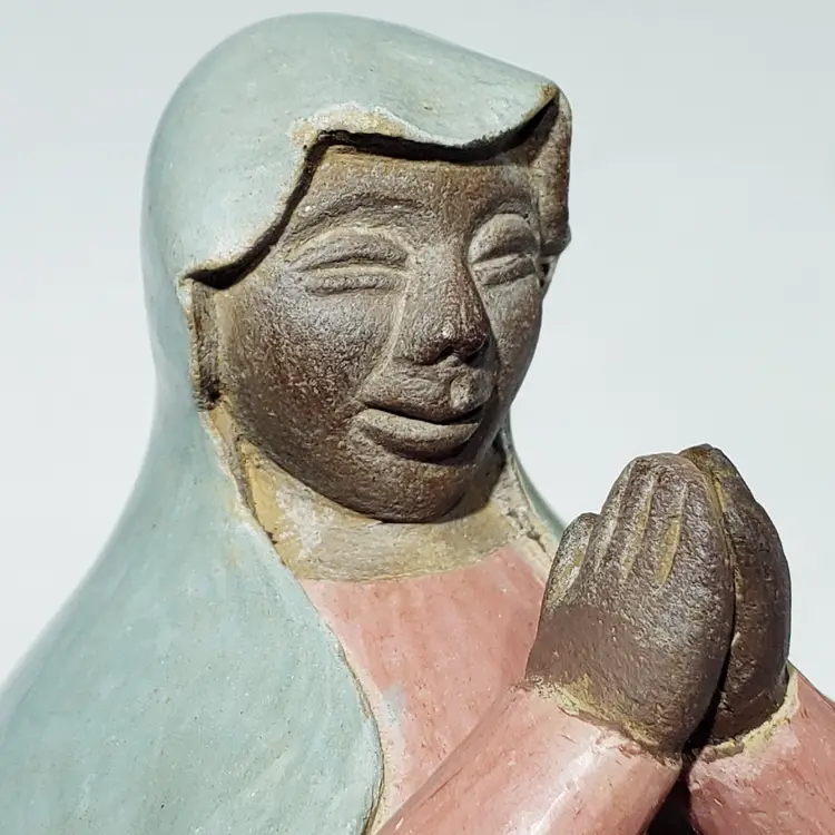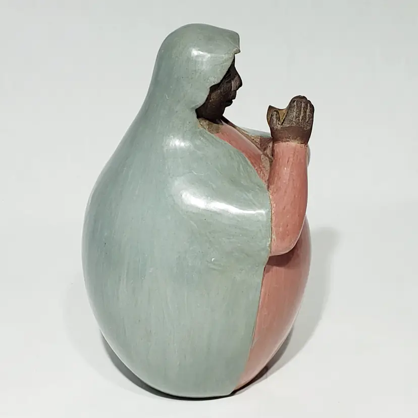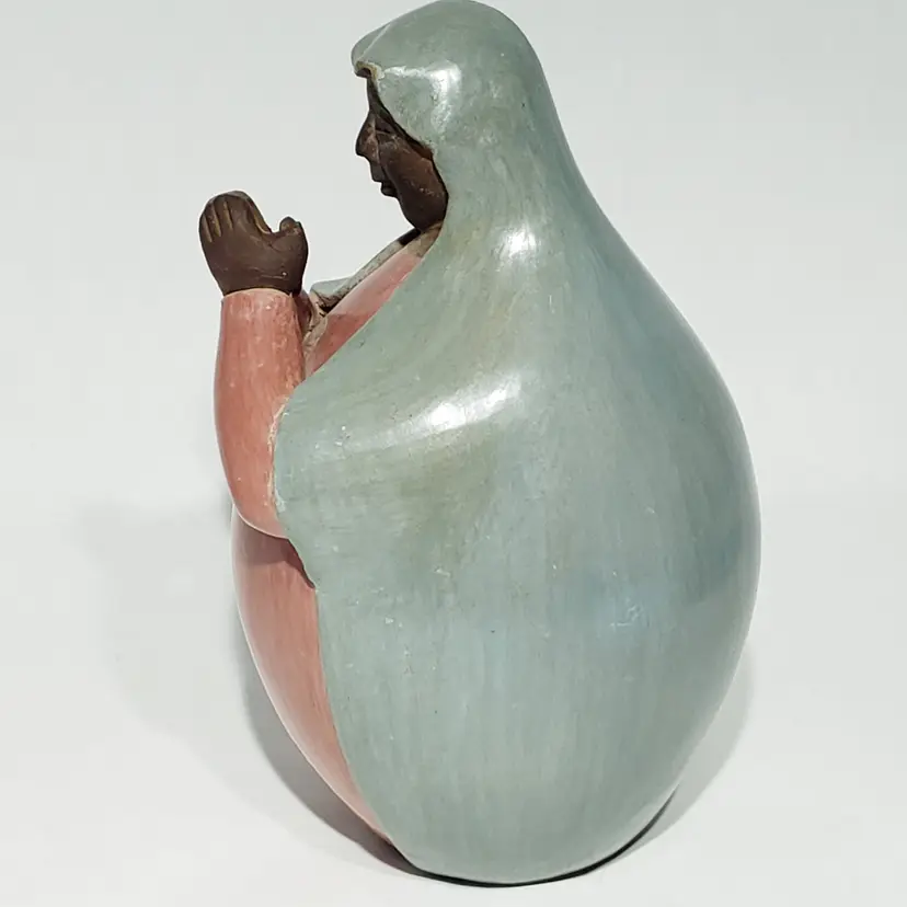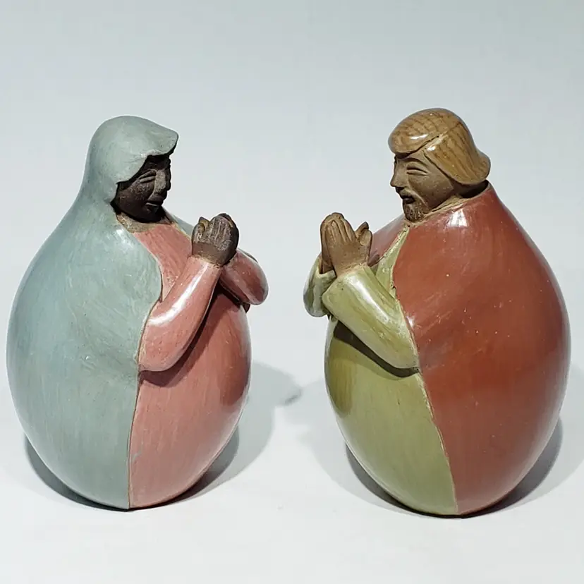 Set of 2 Chulucanas Peru Pottery Praying Mary and Joseph Terracotta Nativity Figurines by Artist Juana Sosa Alache Artist Signed Measures: 3" x 3.25" x 5.5" Pre-owned. See photos.