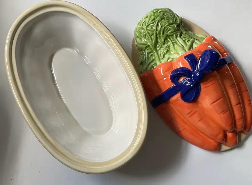 Never used. No chips or cracks. In original box. Nice deep serving dish with a carrot lid cover perfect any time but especially displayed on your Easter table. As always thank you for visiting my store :)