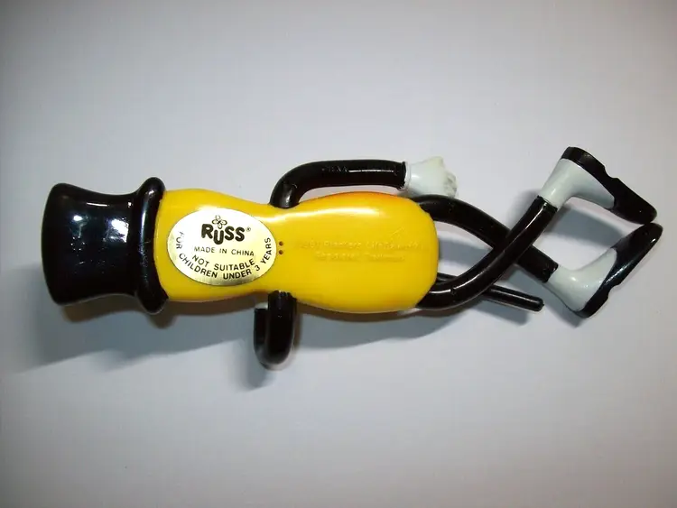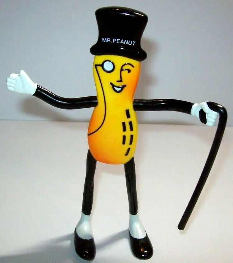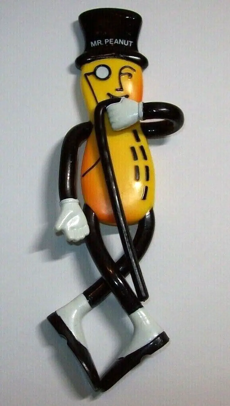 Original vintage 1991 Planters Peanuts rubber bendable doll. Made by Russ and has decal on back. Size is 6".