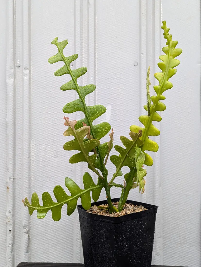 Architectural foliage that will arch and drape in time. Great hanging plant for shade or indoors. 6" pot.
