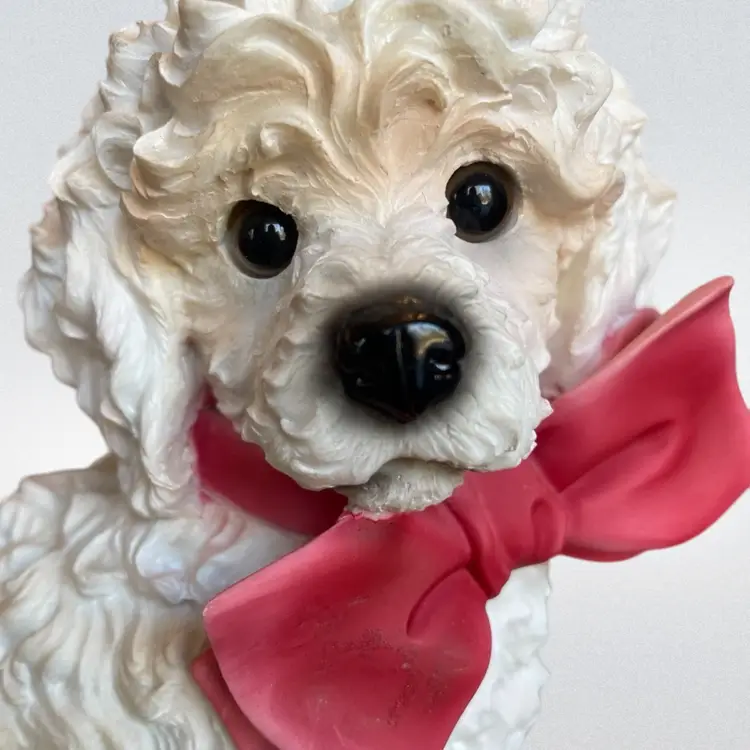 Good condition , I believe it's made of resin. The eyes are so real looking and that's how I ended up with her...