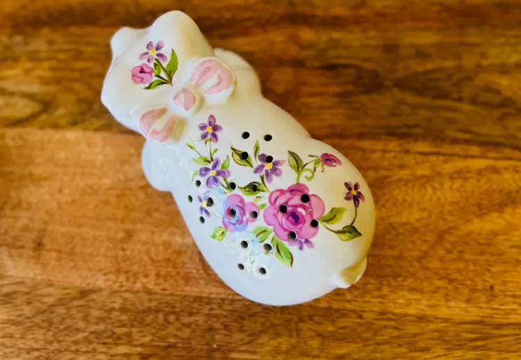 Crafted with meticulous attention to detail, this hand-painted porcelain pig sachet is a charming addition to any cottagecore collection. Originating from Brazil in 1978, this piece showcases a lovely floral pattern set against a classic white background, bringing a touch of vintage elegance to your home decor.The sachet features a delightful animal theme with a quaint pig design, complete with a functional stopper to keep your cherished items safe. Its ceramic and porcelain construction ensures durability, while the intricate artistry of Ceramarte adds to its collectible value. This original piece is a testament to the timeless appeal of cottagecore style and the skillful artisanship of its era.