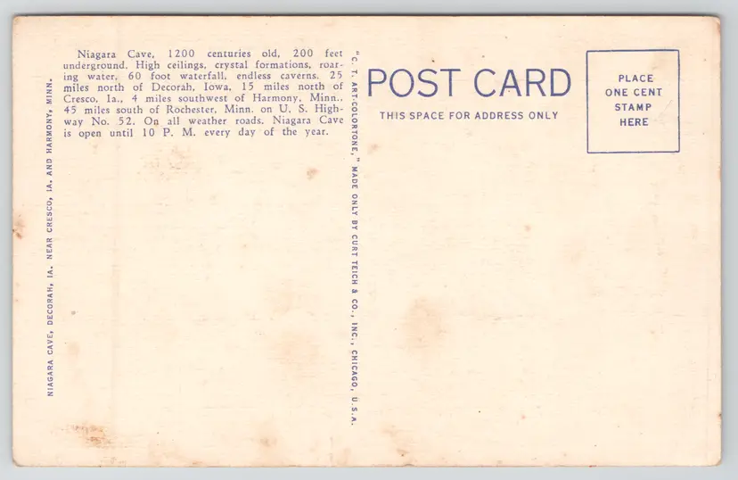 -- This is a Standard sized postcard measuring about 3.5 x 5.5 inches. -- Postcard scanned at 600 DPI, see photos for details.